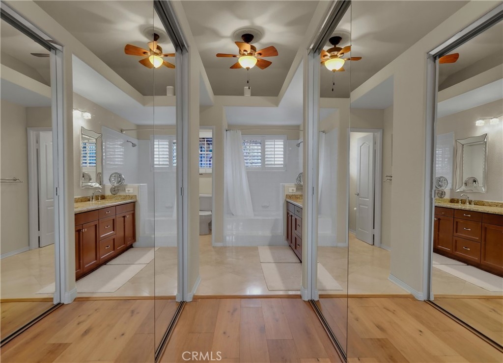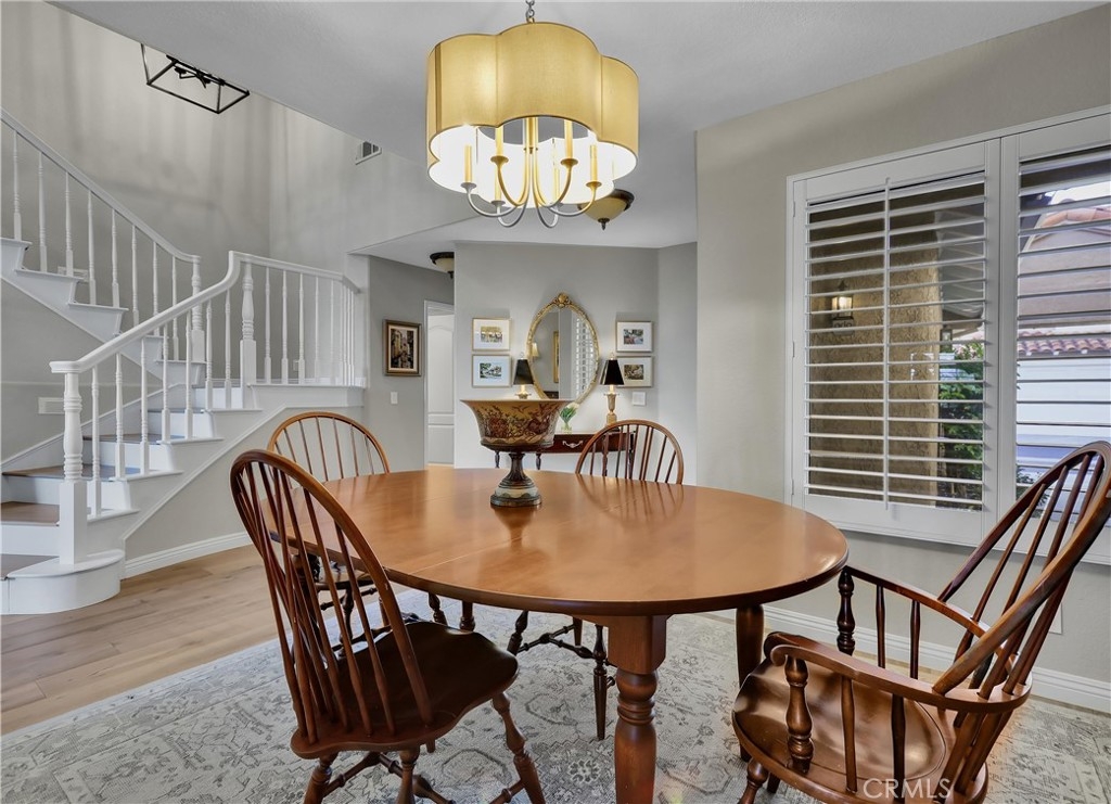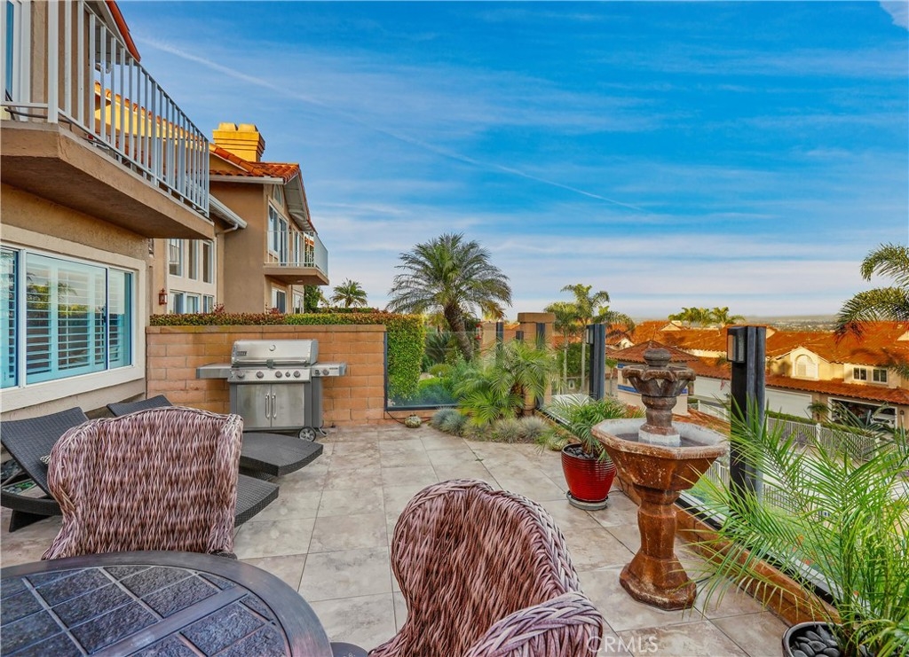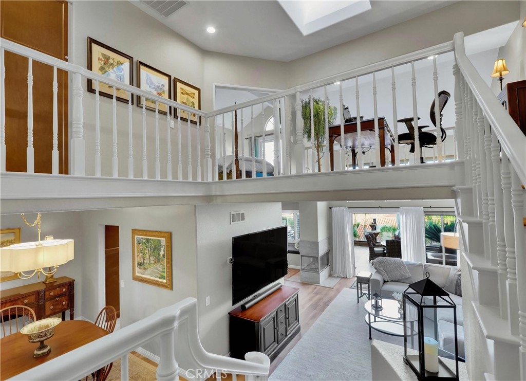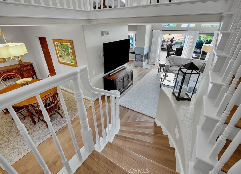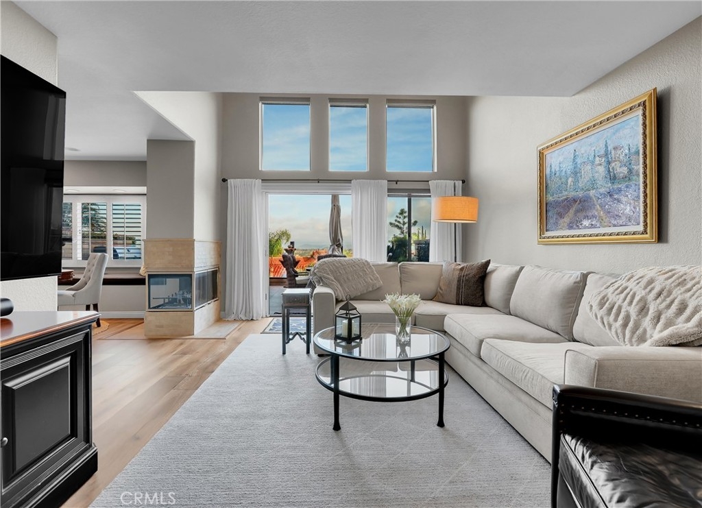 Located in the sought-after Jamaica community on a quiet single loaded street, perched high in Niguel Summit with spectacular panoramic ocean, city lights, and Saddleback Mountain views, this beautifully updated home is the perfect example of pride in ownership. Soak in the light filled interior with two-story ceilings, luxurious wood and travertine floors, plantation shutters, and an open concept floor plan setting the stage for an ideal living environment. Pass through the formal dining area, with an elegant new Chandelier, to the living room with sit down panoramic views, an inviting 3-sided fireplace, and new French doors opening to the back patio creating the perfect indoor-outdoor living space. The handsome kitchen boasts warm upgraded cabinetry, Granite countertops, custom tiled backsplash, updated hardware, Stainless Steel appliances, undercabinet lighting, and is open to the breakfast nook with window seating. A perfect gathering space for morning coffee in front of the cozy 3-sided fireplace. Travel up the staircase, filled with natural light from the skylight above, to the open loft, a flexible space perfect for a home office or home library. The primary suite is a peaceful retreat with vaulted ceilings, 2 closets with mirrored closet doors, and a beautifully updated primary bathroom with dual Granite topped vanity, framed vanity mirrors, updated lighting and hardware, and an oval soaking tub. You will adore the private outdoor balcony taking full advantage of the amazing views, a romantic setting for an evening glass of wine with a loved one. This floor plan includes a 2nd-bedroom suite with high ceilings and a private en-suite bathroom. The tiled backyard patio is a tranquil oasis with manicured landscaping, a new automated irrigation system, and glass fencing, a spectacular setting for relaxing while enjoying cool ocean breezes and breathtaking views! Fine features include HVAC with SEER 16+ rating, Newer Water Heater installed 2019, New ceramic solar tinted windows, Pelican whole-house water filtration/softener & reverse osmosis system, Nest thermostat, Lutron Casetta Wi-Fi based light switches, new Arlo security cameras, motorized blinds, and a video doorbell. 2 car garage with epoxy floors, built-in storage, and overhead racks. Community Pool and spa. Numerous hiking and biking trails throughout neighboring Aliso Creek trail. Close to world-class resorts, golfing, shopping, dining, and just minutes from local beaches & Dana Point Harbor.