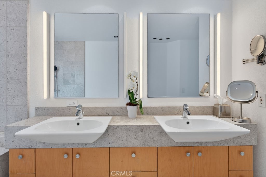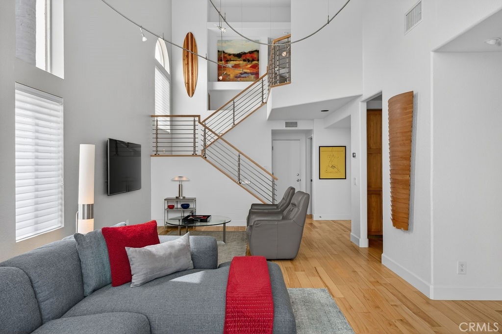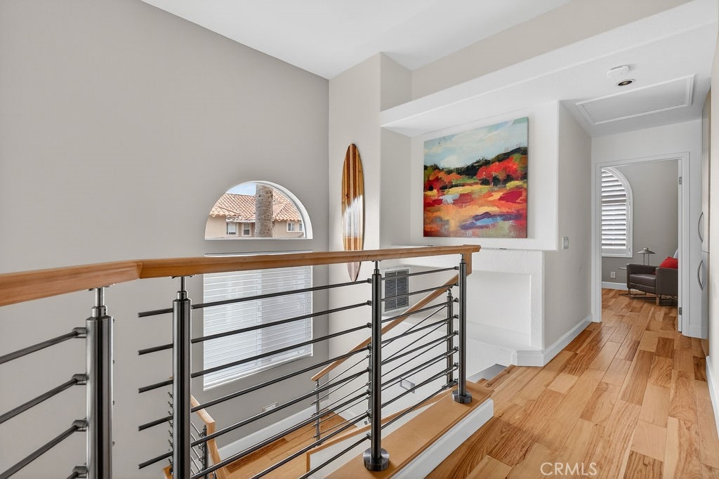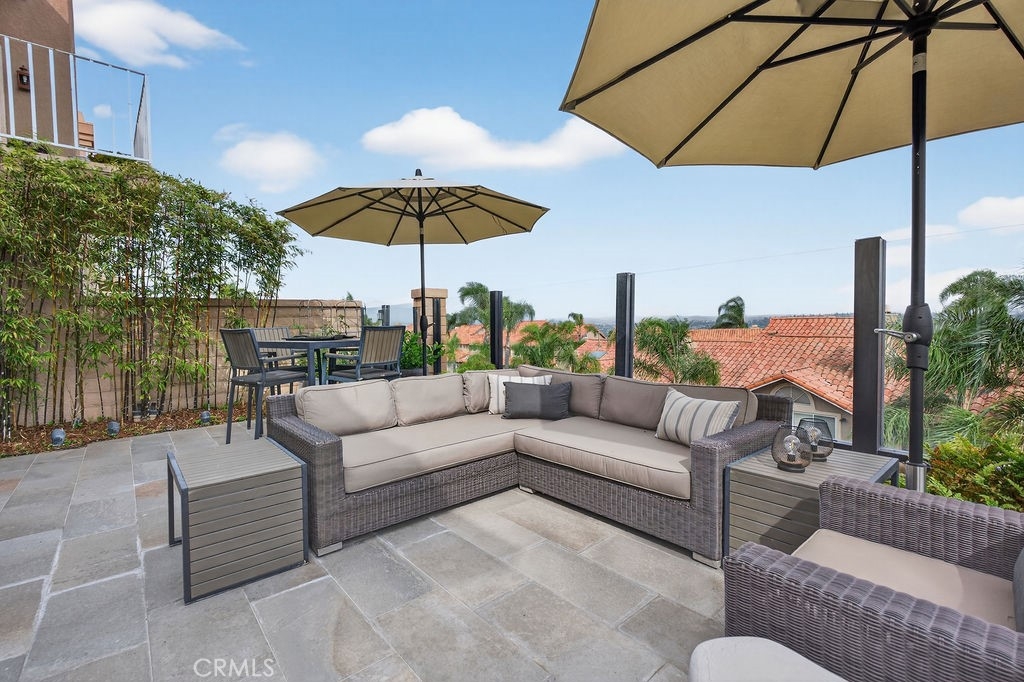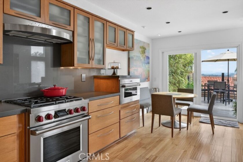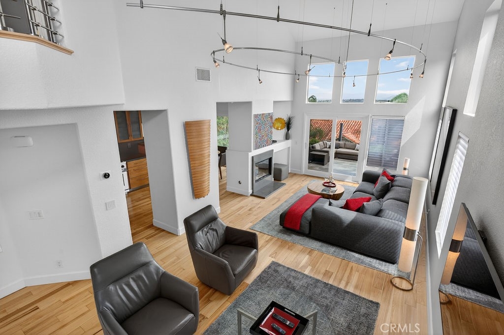 Welcome to your dream home in the coveted Niguel Summit! An exceptional end-unit residence filled with abundant natural light and showcasing breathtaking panoramic views of the ocean, mountains, and sparkling city lights. Extensively remodeled with a designer’s eye, the home has been thoughtfully reimagined into an open concept living space, creating seamless flow and striking details. A custom concrete fireplace and statement staircase anchor the space, while frosted glass doors and curated lighting throughout add a refined, contemporary edge. At the heart of the home, the gourmet kitchen is a true showpiece. Fully redesigned with custom cabinetry, quartz countertops and backsplash, imported Italian fixtures, and a sleek stainless steel sink. Outfitted with high-end appliances, including a Wolf dual-fuel range and Wolf speed oven/microwave, this kitchen blends elevated design with everyday functionality. The primary suite offers a private retreat, featuring a beautifully redesigned ensuite bath with a spa tub and shower, custom cabinetry, premium fixtures, and a California Closets system. The secondary bedroom is equally well-appointed with custom built-in cabinetry and a Murphy bed, plus an upgraded bath with rain shower and elegant finishes. Additional highlights include hickory-engineered wood flooring throughout, custom baseboards, silhouette blinds, and custom shutters. Modern living is effortless with integrated smart home features, an audio visual system, and Nest-controlled climate and lighting. Step outside to your private patio, with ocean views, beautiful surroundings, porcelain tile, and a custom wrought iron gate. The finished garage offers epoxy flooring, custom cabinetry, and a permitted EV charging station. Ideally located just steps from the community pool and spa, and moments from world-class hiking and biking trails leading to coastal bluffs, this home is minutes from renowned beaches, fine dining, and premier shopping. A rare opportunity to own a truly turnkey, view home in one of Orange County’s most sought-after communities.