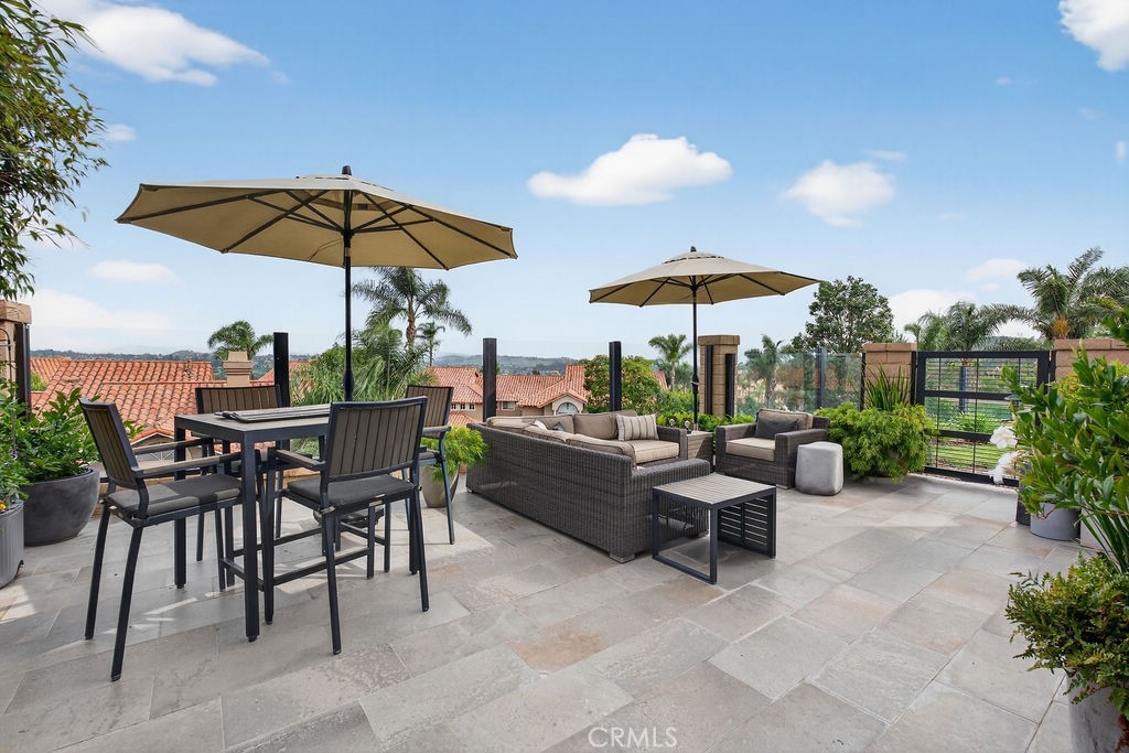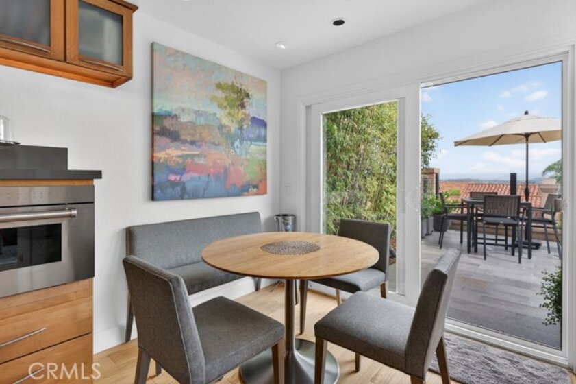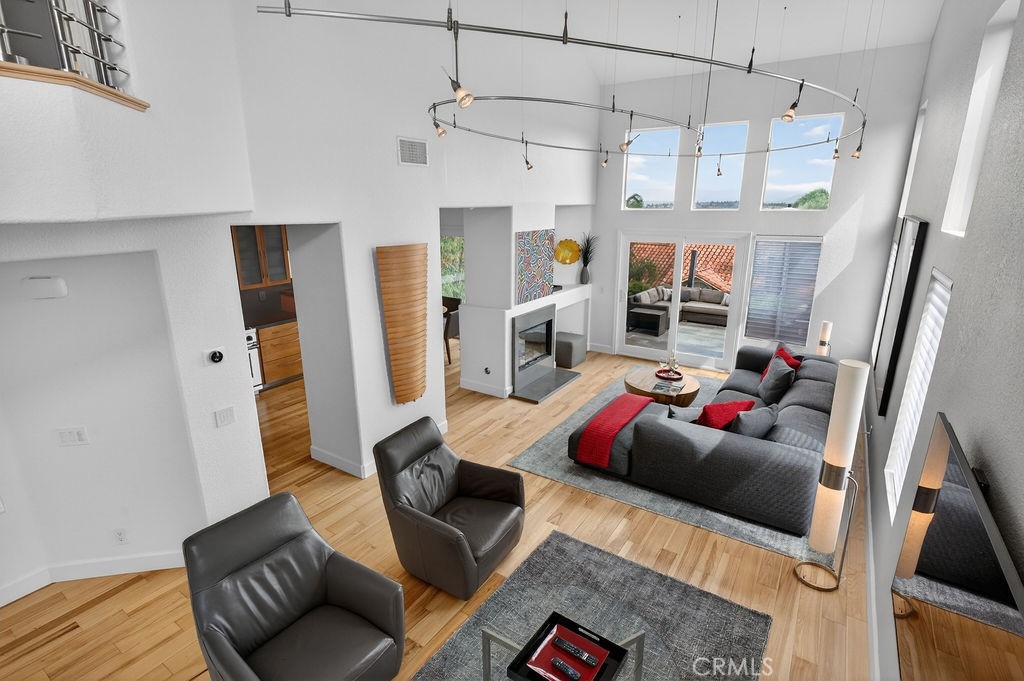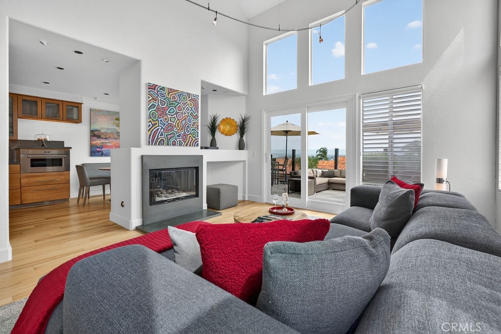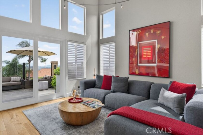 Welcome to your dream home in the coveted Niguel Summit! An exceptional end-unit residence filled with abundant natural light and showcasing breathtaking panoramic views of the ocean, mountains, and sparkling city lights. Extensively remodeled with a designer’s eye, the home has been thoughtfully reimagined into an open concept living space, creating seamless flow and striking details. A custom concrete fireplace and statement staircase anchor the space, while frosted glass doors and curated lighting throughout add a refined, contemporary edge. At the heart of the home, the gourmet kitchen is a true showpiece. Fully redesigned with custom cabinetry, quartz countertops and backsplash, imported Italian fixtures, and a sleek stainless steel sink. Outfitted with high-end appliances, including a Wolf dual-fuel range and Wolf speed oven/microwave, this kitchen blends elevated design with everyday functionality. The primary suite offers a private retreat, featuring a beautifully redesigned ensuite bath with a spa tub and shower, custom cabinetry, premium fixtures, and a California Closets system. The secondary bedroom is equally well-appointed with custom built-in cabinetry and a Murphy bed, plus an upgraded bath with rain shower and elegant finishes. Additional highlights include hickory-engineered wood flooring throughout, custom baseboards, silhouette blinds, and custom shutters. Modern living is effortless with integrated smart home features, an audio visual system, and Nest-controlled climate and lighting. Step outside to your private patio, with ocean views, beautiful surroundings, porcelain tile, and a custom wrought iron gate. The finished garage offers epoxy flooring, custom cabinetry, and a permitted EV charging station. Ideally located just steps from the community pool and spa, and moments from world-class hiking and biking trails leading to coastal bluffs, this home is minutes from renowned beaches, fine dining, and premier shopping. A rare opportunity to own a truly turnkey, view home in one of Orange County’s most sought-after communities.