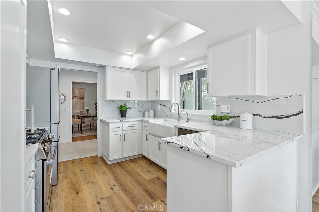 PRICE IMPROVEMENT! Discover this beautifully updated, move-in ready single-level home located in the highly sought after El Niguel Terrace community of Laguna Niguel. Boasting 4 bedrooms and 2.5 bathrooms, this spacious home features a bright, open floor plan with stylish, modern finishes throughout. At the heart of the home is a chef-inspired kitchen complete with quartz countertops, Bosch appliances, a farmhouse sink, built-in microwave, gas range, soft-close cabinetry, and ample pantry space – perfect for both everyday meals and entertaining guests. The inviting family room includes a cozy fireplace and opens seamlessly to the private backyard through elegant French doors, offering the perfect setting for outdoor dining or relaxing under the sun. The primary suite is a serene retreat with dual vanities, a generous mirrored closet, and direct access to the spacious patio, ideal for quiet mornings or evening unwinding. Additional highlights include luxury vinyl plank and tile flooring, dual-pane windows & sliding doors, central air conditioning, and a 2-car garage with laundry hookups and extra storage. Residents enjoy access to community amenities such as a sparkling pool and scenic walking trails. With nearby access to Salt Creek Beach, El Niguel Golf Course, Laguna Niguel Regional Park, and the Laguna Coast Wilderness, outdoor adventures are just moments away. Shopping, dining, and coastal destinations are all within easy reach. Check out "The Cove at El Niguel", a 22 townhome-style proposed development on the adjacent parcel of land to this community that is targeting a younger demographic. See more info at "thecovelagunaniguel.com" Best of all, this home offers both privacy and peace while still being close to everything Laguna Niguel has to offer, especially great beaches!! Don’t miss your chance to own this stunning turnkey home – it’s ready for you to move in and enjoy! Make your appointment now!