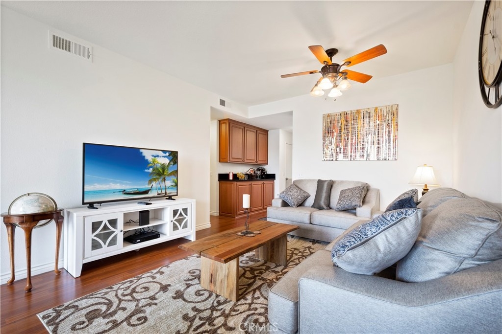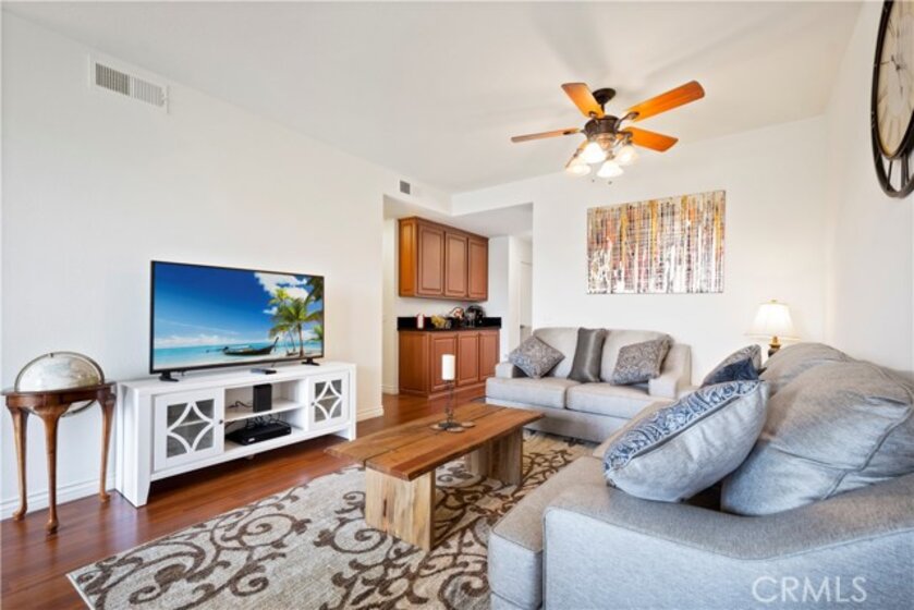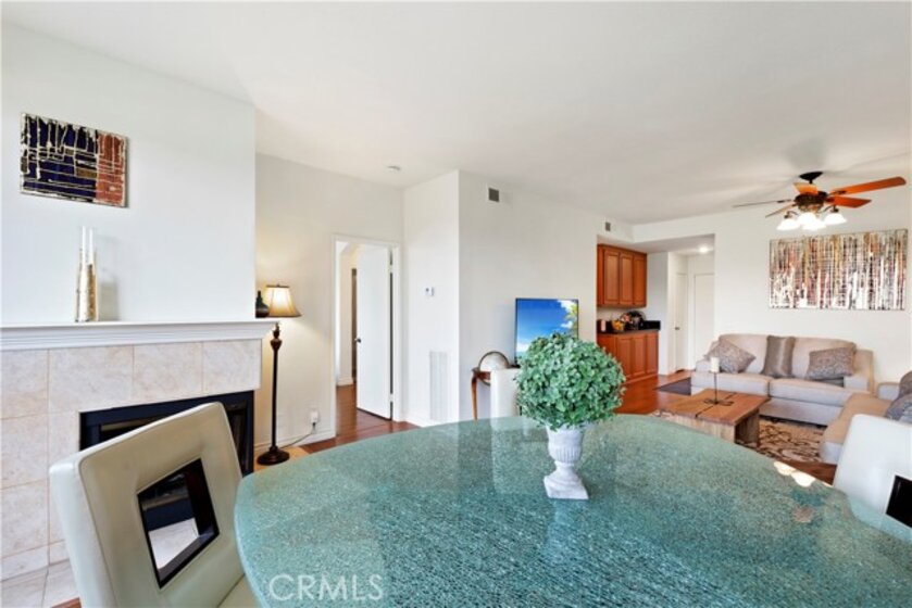 Coastal Hillside Living in Laguna Niguel. Welcome home to this beautifully upgraded residence nestled in the scenic hills of Laguna Niguel—just minutes from the beach and surrounded by the best of Southern California living. Step inside to a light-filled, open floor plan designed for comfort and effortless living. Gorgeous wood laminate flooring flows throughout the living room, dining area, hallways, and bedrooms, creating a warm and inviting atmosphere. The remodeled kitchen is both stylish and functional, featuring upgraded cabinetry, recessed lighting, modern appliances, laminate flooring, and a convenient butler’s pantry serving bar just off the kitchen—perfect for entertaining or everyday convenience. The living and dining rooms are anchored by a stunning gas fireplace, creating a cozy focal point for relaxing evenings. Just beyond, your private covered patio offers the perfect place to enjoy morning coffee or unwind at sunset while taking in serene views of the neighboring golf course and a glimpse of the ocean in the distance. Both bedrooms are generously sized with ample closet space, while the remodeled bathrooms offer tasteful updates and modern comfort. Additional highlights include a raised-panel front door, ceiling fans, baseboards, mirrored closet doors, and thoughtful upgrades throughout. The home also includes a single-car detached garage with convenient guest parking nearby. Residents enjoy access to resort-style community amenities including a gated pool, spa, and fitness center. Outdoor enthusiasts will appreciate nearby hiking trails, bike paths, and a local dog park—making it easy to enjoy the active coastal lifestyle. This move-in ready home offers the perfect blend of comfort, style, and location—just moments from the beaches, dining, and shopping that make Laguna Niguel such a sought-after place to live. ?Interior photos are from 2020. New photos and video uploaded April 1st.