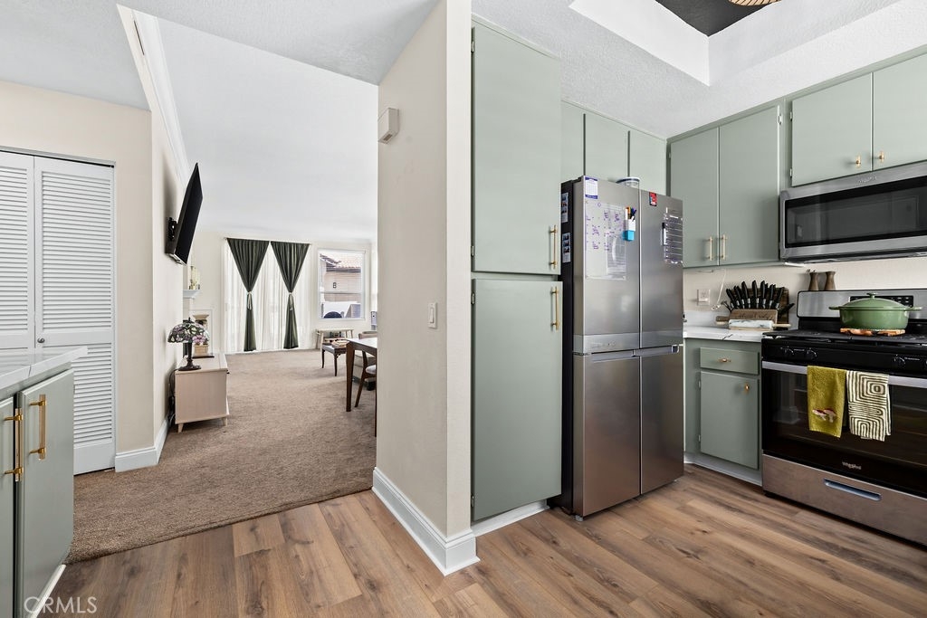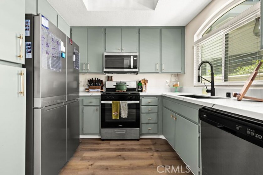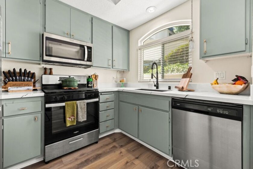 Welcome to 30902 Clubhouse Drive #7D, a beautifully updated single-level end-unit located in the highly sought-after La Vista community of Laguna Niguel. Ideally positioned near the main entrance, this home offers both convenience and privacy, making everyday living effortless. Step inside to a light-filled, open-concept layout designed with comfort and style in mind. The inviting living room, anchored by a cozy fireplace, flows seamlessly to a private balcony, perfect for enjoying morning coffee, evening sunsets, and the refreshing coastal breezes that define this area. The kitchen has been thoughtfully updated with stainless steel appliances, newly painted cabinetry, and refreshed countertops, complemented by new wood flooring in both the kitchen and bathroom. Crown molding, high baseboards, and clean, modern finishes throughout elevate the home’s overall aesthetic. This well-designed residence offers two spacious bedrooms, including a comfortable primary suite, along with full-size interior laundry for added convenience. A detached one-car garage and additional storage enhance the home’s functionality. Residents of La Vista enjoy access to resort-style amenities, including a sparkling pool and spa, fitness center, clubhouse, and BBQ areas, all set within beautifully maintained grounds. HOA dues conveniently include water, trash, and exterior maintenance. Located just minutes from Salt Creek Beach, Dana Point Harbor, and the charm of Laguna Beach, this home places you at the center of some of Southern California’s most desirable coastal destinations. Enjoy easy access to top-rated dining, boutique shopping, hiking and biking trails, and all that the coastal lifestyle has to offer.