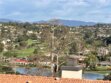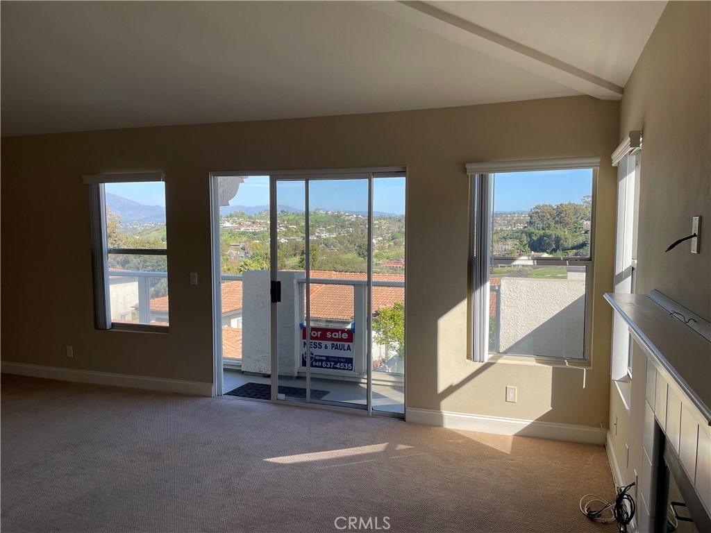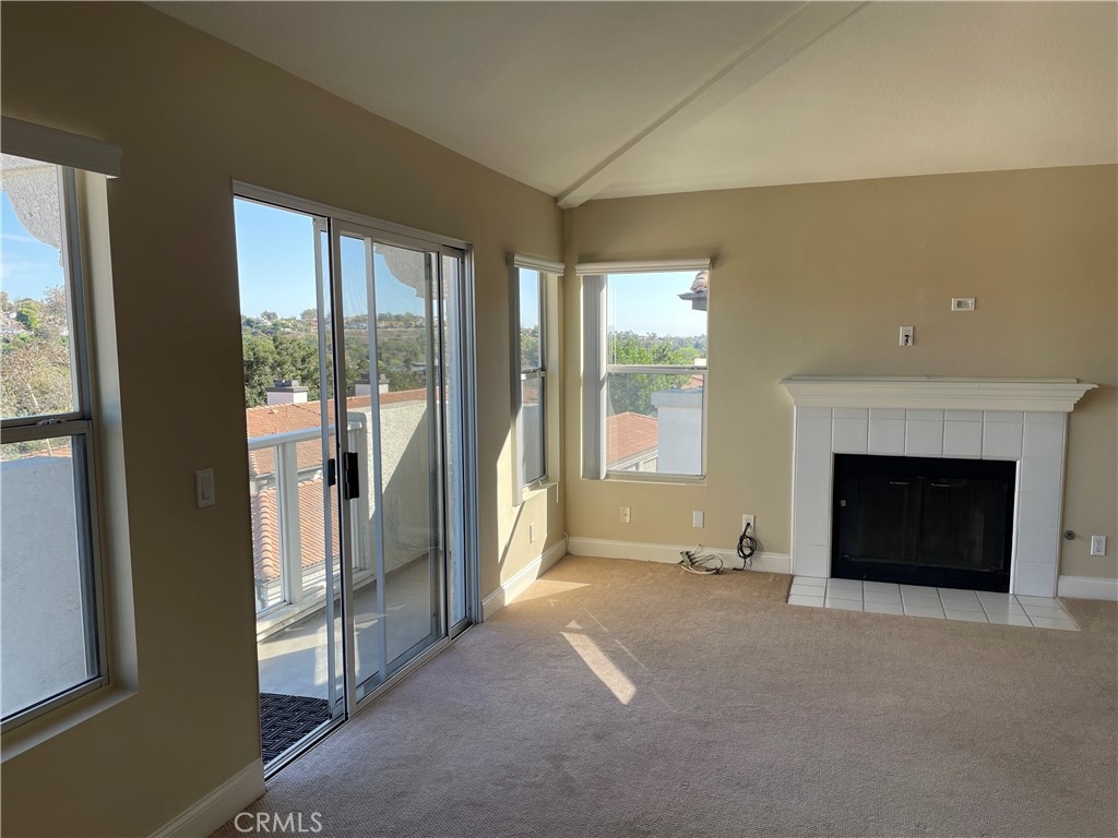 WOW, What a View! Golf course, city lights make this large 1 bedroom penthouse and incredible place to call home.This charming End unit condo nestled in the La Vista Community offers a 1 Bd and an open Office/Den with vaulted ceilings. The open and airy floorpan offers abundant natural lights and spacious living area. Central heating and air plus a nice fireplace with a private balcony with views of mountains and city lights. Cozy kitchen with stainless steel refrigerator, range and microwave. Washer and dryer included. This ocean close community boasts common area pool, spa, and fitness center. There is a 1 car detached garage.