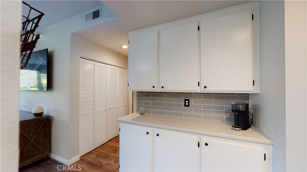 Immaculate single-level end unit with gorgeous canyon/hill views and ocean breezes! This highly updated unit is ready to move in. Less than 2 miles from the beach the La Vista community offers resort-style living with stunning amenities including a pool, spa, gym, and clubhouse. This property location is surrounded by some of South Orange County's finest communities and schools. This 2 bedroom and 2 full bath property is loaded with high-end features including a stunning remodeled kitchen and jacuzzi master bathtub. The spacious outdoor deck is the perfect place to dine al fresco while enjoying the surrounding hillsides. The property feature a detached garage with plenty of storage space. The unit features gorgeous laminate flooring throughout with high-end fixtures. Enjoy the open living space with cozy fireplace and ample storage throughout. The end unit is very private and is at the very end of the complex making for a perfect location.