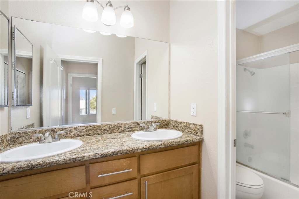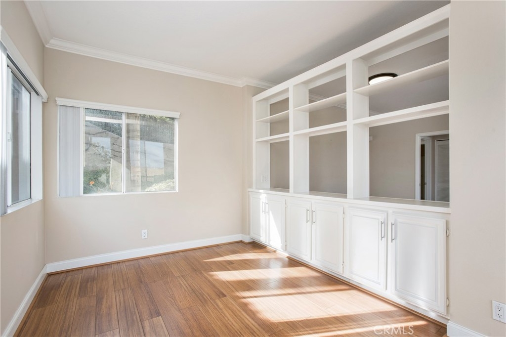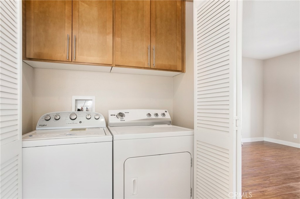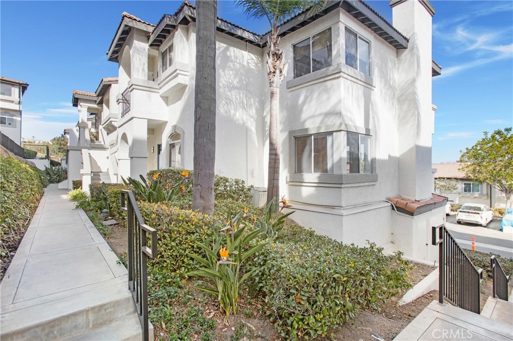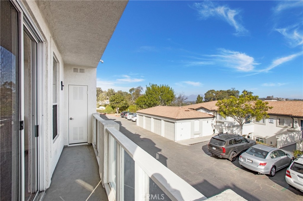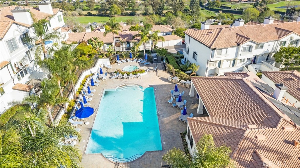 Experience panoramic views from this stunning end-unit condo in the highly sought-after community of La Vista! Former model home offers one bedroom plus an office/den with built in cabinets, laminate flooring throughout, in-unit laundry and the convenience of a direct access garage with finished walls and showroom-quality flooring. The spacious living room is enhanced by a stone fireplace and a balcony with views, while the gourmet kitchen is equipped with sleek granite countertops, stainless steel appliances and a brand new refrigerator. The bedroom provides ample storage with large mirrored closets plus an additional walk-in closet. Updated bathroom with granite counters, dual sinks, a brand new Kohler toilet and newly reglazed shower/tub. Enjoy resort-style living with access to community amenities including a clubhouse, a sparkling pool, 2 spas, BBQ areas, car washing station and fitness center. Ideally located near golf, tennis, shopping, scenic walking and biking trails and only a few miles from the beach!
