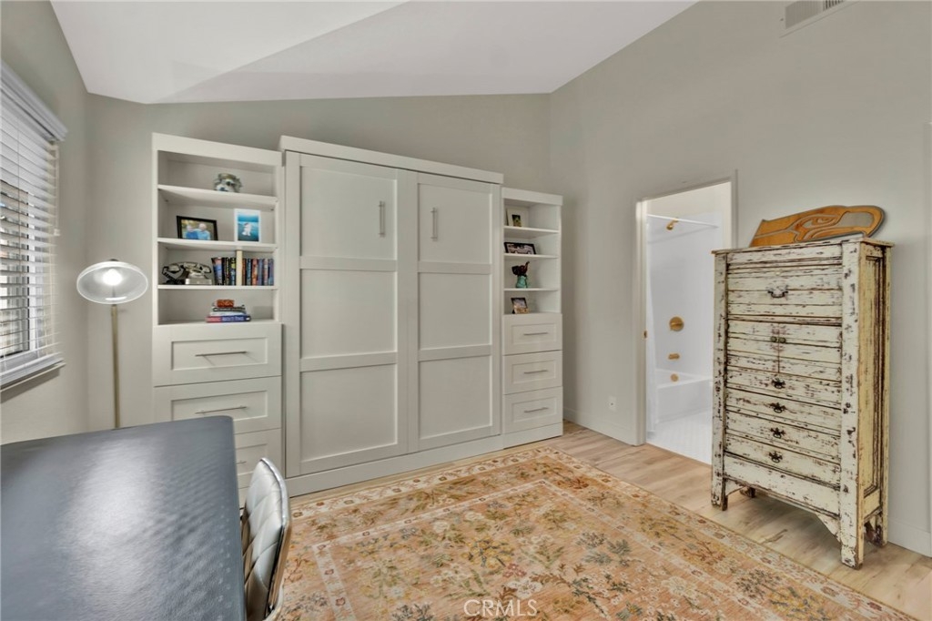 Experience the pinnacle of elegance in this stunning 2-story, 1,024 sq. ft., 2-bedroom, 2.5-bathroom ground-level condo in the prestigious La Vista community of Laguna Niguel. Ideally located just minutes from the Pacific Ocean, this meticulously maintained home offers a perfect blend of comfort and sophistication. Step inside to discover light vinyl flooring throughout, an open-concept living and dining area adorned with recessed lighting, a striking wood-wrapped beam, and a stylish accent brick wall. A sleek sliding patio door leads to a charming outdoor patio, where you can unwind while enjoying serene greenbelt, hillside, and city views. The bright and inviting kitchen is a chef’s dream, featuring stainless steel appliances, exquisite granite countertops, and elegant pendant lighting. Upstairs, two spacious primary bedrooms boast mirrored closet doors and ensuite bathrooms, all thoughtfully upgraded with newer sinks, countertops, mirrors, and toilets for a modern, fresh feel. The in-unit laundry, enhanced with custom sliding barn doors, adds convenience and character. This condo includes a 1-car detached garage and grants access to resort-style amenities, including a sparkling pool, relaxing spa, private gym, barbecue area, and clubhouse—perfect for entertaining. No one above or below!! New HVAC and new windows and slider doors. Water and trash are included in the association dues, and with No Mello Roos, this is an exceptional opportunity. Nestled near Salt Creek Beach, Dana Point Harbor, and Laguna Beach, this home is surrounded by world-class resorts, fine dining, parks, schools, and shopping. With convenient access to the I-5 freeway and 73 toll road, coastal luxury meets everyday convenience. Don’t miss out on this incredible opportunity—this gem won’t last long!