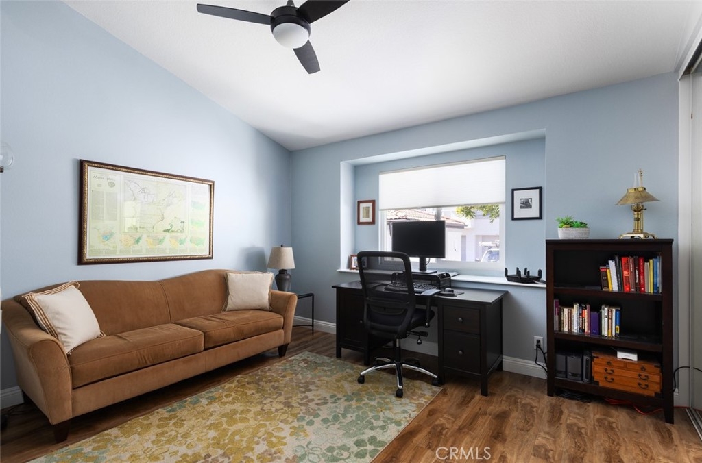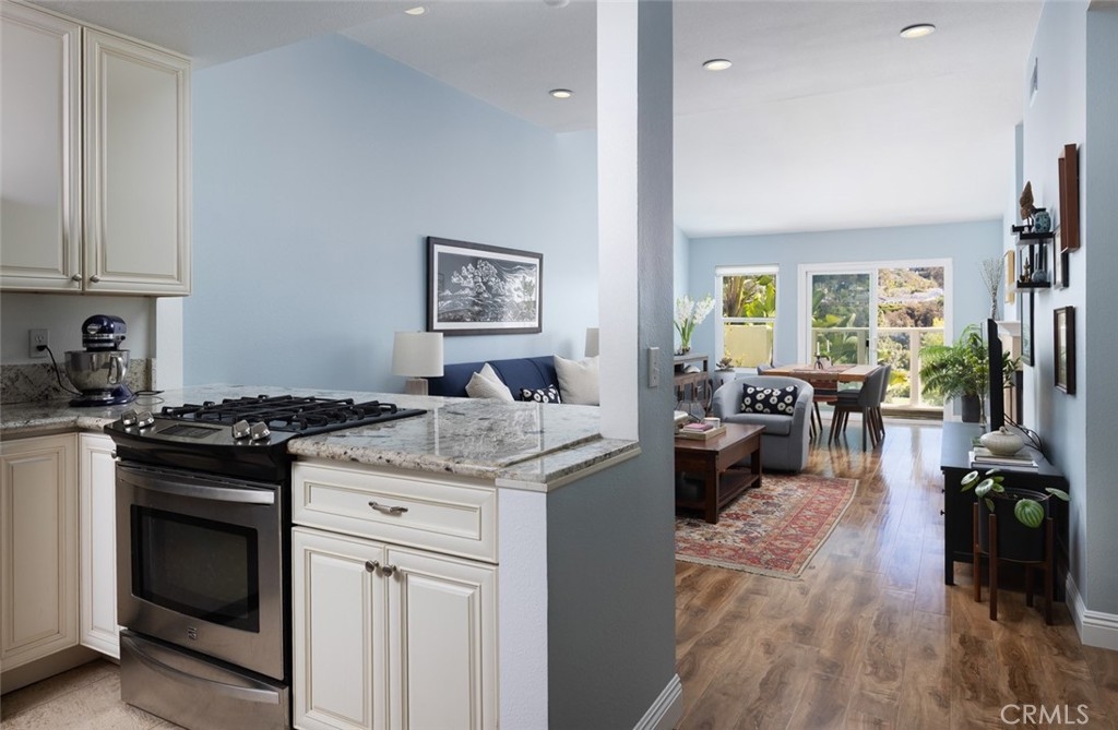 Welcome home to this beautifully maintained single-level upper unit in the highly desirable La Vista community, offering mountain and golf course views from your private balcony. Just two miles from world-class beaches, resorts, and championship golf courses, this home is perfectly situated for those who appreciate both tranquility and convenience. This thoughtfully designed 2-bedroom, 2-bathroom condo features dual primary suites, each with its own private ensuite bathroom. The primary suite includes a spacious walk-in closet and a dual-sink vanity, while the second bedroom offers a generously sized closet and a well-appointed bath. With 14-foot vaulted ceilings in the main living room, the open and airy living space is bathed in natural light, creating an inviting atmosphere. A travertine-tiled gas fireplace serves as a beautiful focal point in the living area, which extends to a private balcony deck, perfect for enjoying the serene views. Designed with both style and function in mind, the home features granite countertops, traditional custom cabinetry, stainless-steel appliances, and luxury vinyl flooring throughout. Central air conditioning ensures year-round comfort, and the in-unit laundry, conveniently tucked into the hallway closet, adds to the home's practicality. Located near La Vista’s main clubhouse, this residence offers easy access to the community’s resort-style amenities, including a full gym, sparkling solar heated pool, outdoor spa, and inviting BBQ area. With beautifully landscaped grounds, walking trails, and a short distance to dining, shopping, and downtown areas, this home provides the perfect balance of comfort and coastal living.