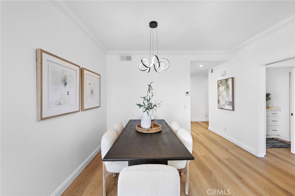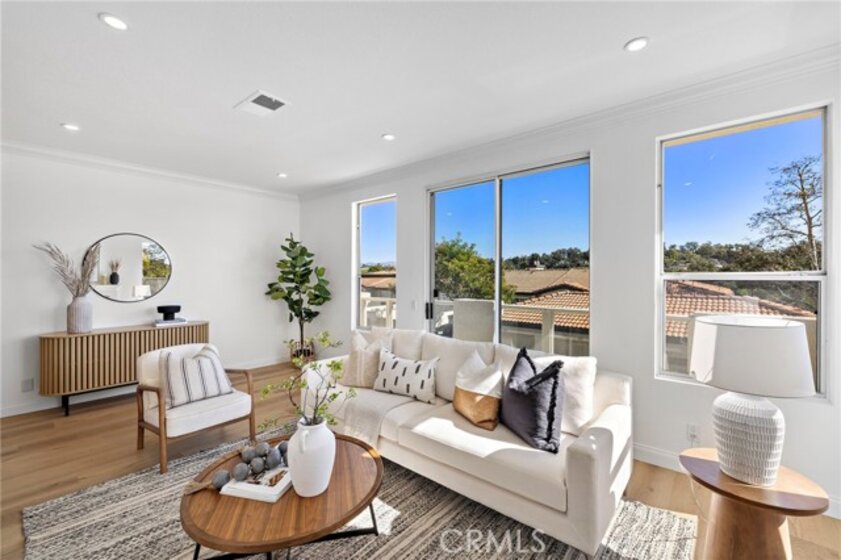 Set within an ideal Laguna Niguel location, this fully remodeled corner residence offers light filled living and effortless access to everything that defines coastal Southern California. Shopping, dining, entertainment, renowned surf breaks, golf courses, and scenic hiking trails are all just minutes away, creating a lifestyle that feels both active and connected. This two bedroom, one bathroom home has been thoughtfully updated with quartz countertops, stainless steel appliances, modern lighting, updated hardware, and a palette of designer neutral paint tones. Laminate flooring flows throughout the space, enhancing the clean and cohesive feel. The living room is bright and welcoming, anchored by a cozy fireplace that adds warmth on cooler coastal evenings. Sliding doors open to a private balcony, extending the living space outdoors. The spacious primary bedroom features both a walk in and reach in closet, while the second bedroom offers flexibility as a guest room, home office, or nursery. Laundry hookups are conveniently located inside the unit, and with no residence below, the home enjoys an added sense of privacy and quiet. A convenient attached single car garage with direct access completes the offering. Community amenities include a pool, spa, and fitness center. Turn key and well positioned, this residence offers a refined coastal lifestyle and is ready for its next chapter in Laguna Niguel.