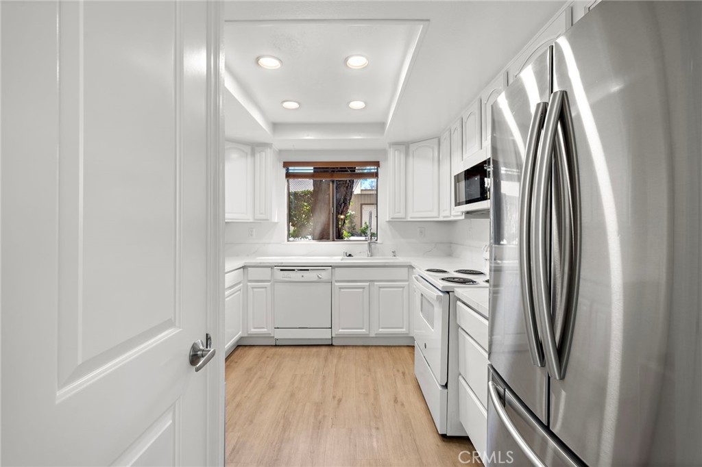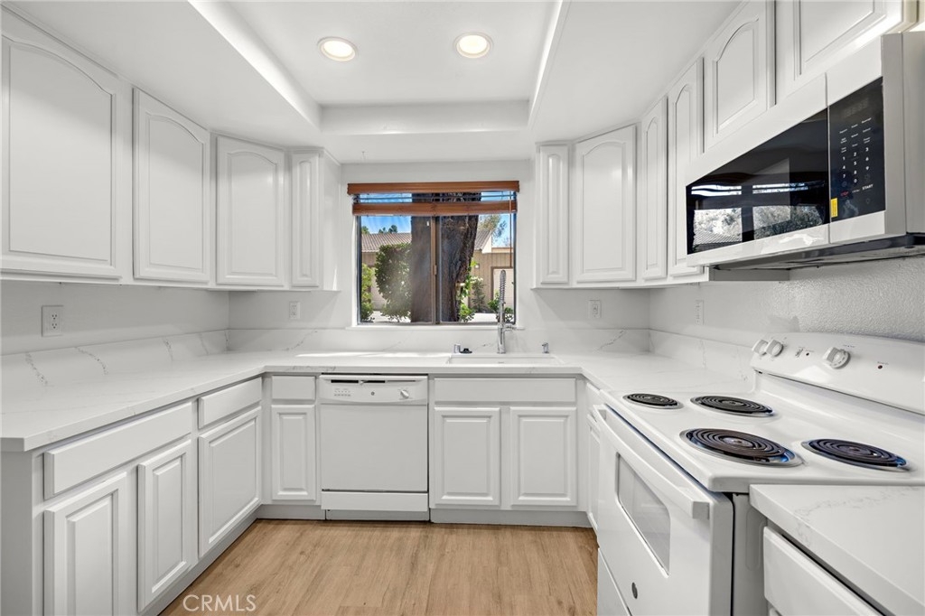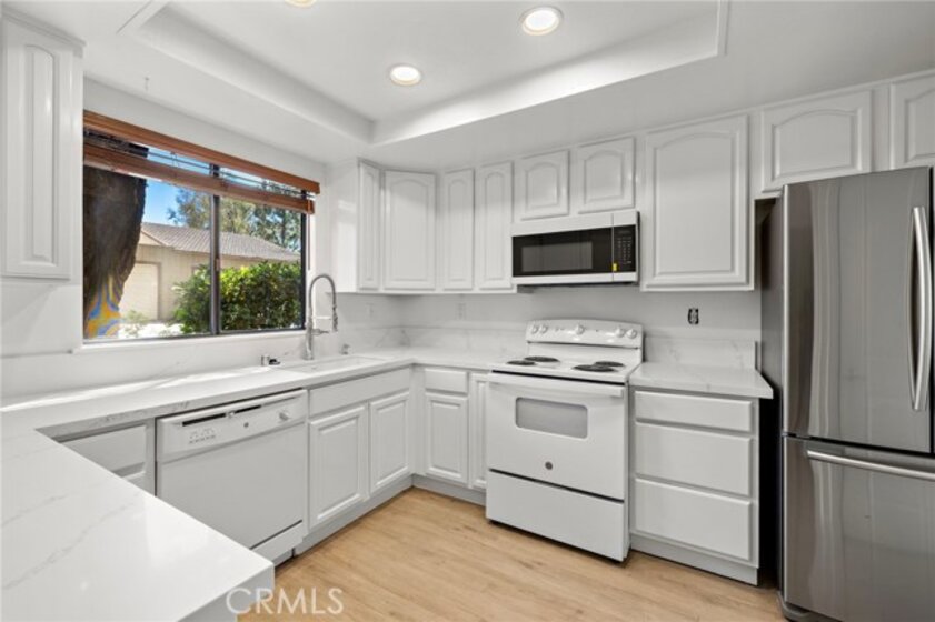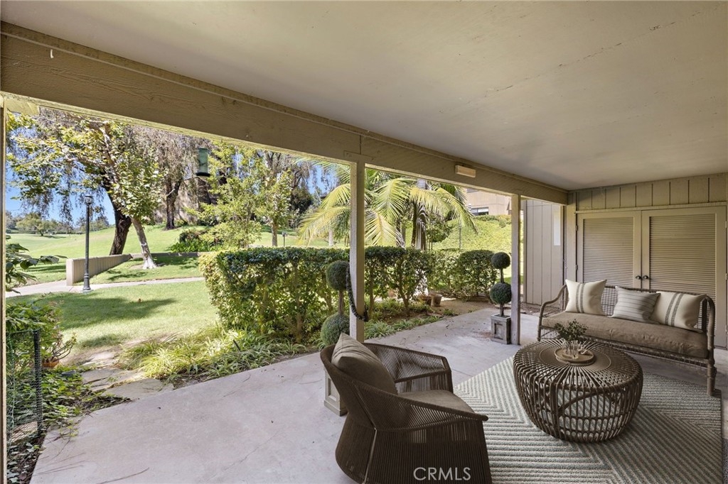 Welcome to 31291 East Nine Drive #29F, a beautifully upgraded 3-bedroom, 2-bath ground-level condo in the highly desirable East Nine community of Laguna Niguel. This light-filled home features an open-concept dining and living room layout with fresh updates throughout, including new quartz kitchen countertops, a deep single-basin sink with designer faucet and soap dispenser, new garbage disposal with air gap and a brand-new microwave. The ceilings have been refinished to remove the acoustic texture, and the entire interior, including the kitchen cabinets, has been freshly painted for a clean, modern look. The primary suite also enjoys direct patio access, a large closet, and an en-suite bathroom, while two additional bedrooms and an upgraded guest bath complete the interior. The spacious living and dining area is bathed in natural light because it is an end unit and flows seamlessly to the patio, offering relaxing views of the lush greenery and distant fairways of El Niguel Country Club. The HVAC system has been serviced and includes a new thermostat. The sliding door screens have been replaced which provide easy access to the expansive covered patio off the living room, primary and second bedrooms. Residents of East Nine enjoy resort-style amenities including a sparkling pool, spa, picnic areas with BBQs, and peaceful walking paths surrounded by mature trees and manicured landscaping. All of this is in an unbeatable location just minutes from world-class beaches, Dana Point Harbor, top-rated schools, shopping, and dining.