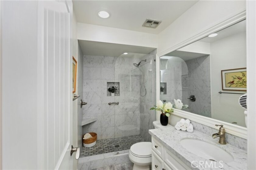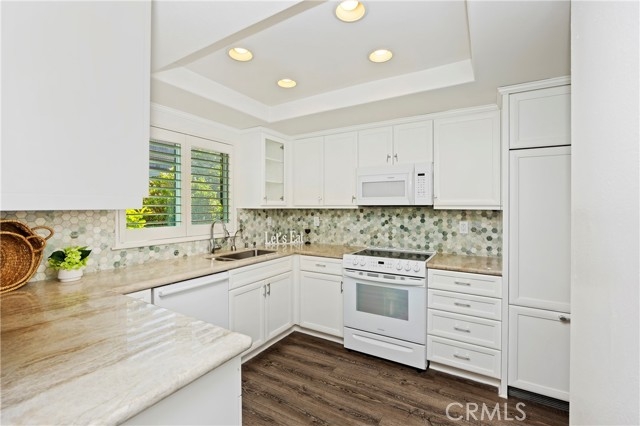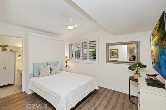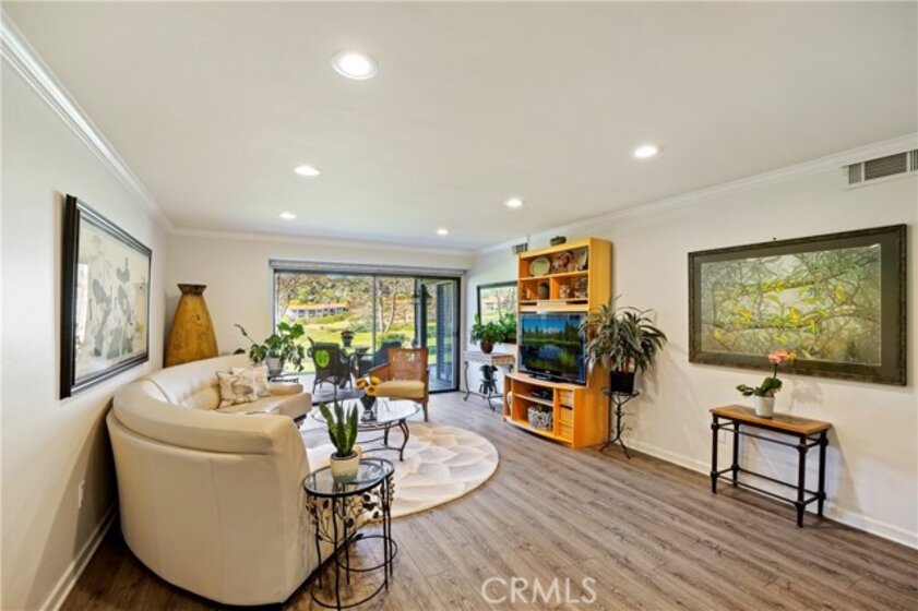 PRICE IMPROVEMENT!!!! Located directly on the 2nd hole of the Prestigious El Niguel private golf course! Come and see this highly sought out, single-story condo offering panoramic views of the lake, lush greens and fairways. Located in the most desirable area of the East Nine Community. This home has been completely upgraded and boasts a beautifully adorned living room and kitchen with an abundance of natural light, all new double pane windows, brand new updated backsplash, gorgeous quartz counter tops, pull-out kitchen cabinet organizers, modern plank style floors, custom crown molding and remote controlled living room window shades. Both bathrooms have been upgraded with new flooring, marble counter tops, designer sinks and much more. Your spacious Master bedroom includes custom casement-style louvered plantation shutters, a whisper-quiet ceiling fan and patio slider to enjoy the endless views. The second bedroom has a HUGE walk-in closet that can also be used as additional storage space and the BEST feature of this room is the unique built-in Queen-sized Murphy Bed. This unit has a full size washer/dryer and just steps away is the huge 400+sq ft detached two car garage with built-in-cabinets for additional storage. Come and enjoy all of the upscale amenities that this community has to offer. Water and Trash are included in the HOA dues. This location can’t be beat!