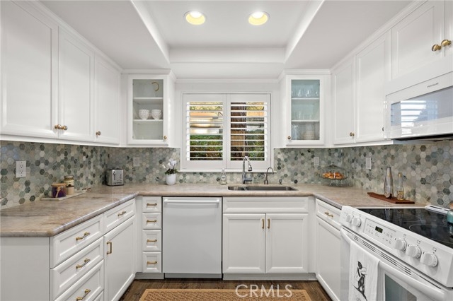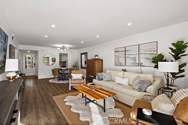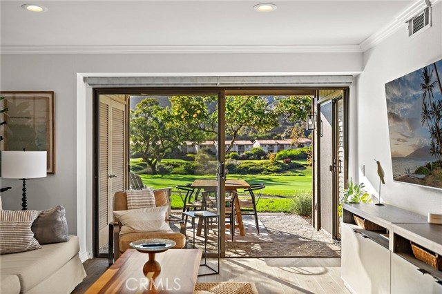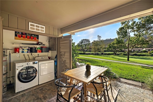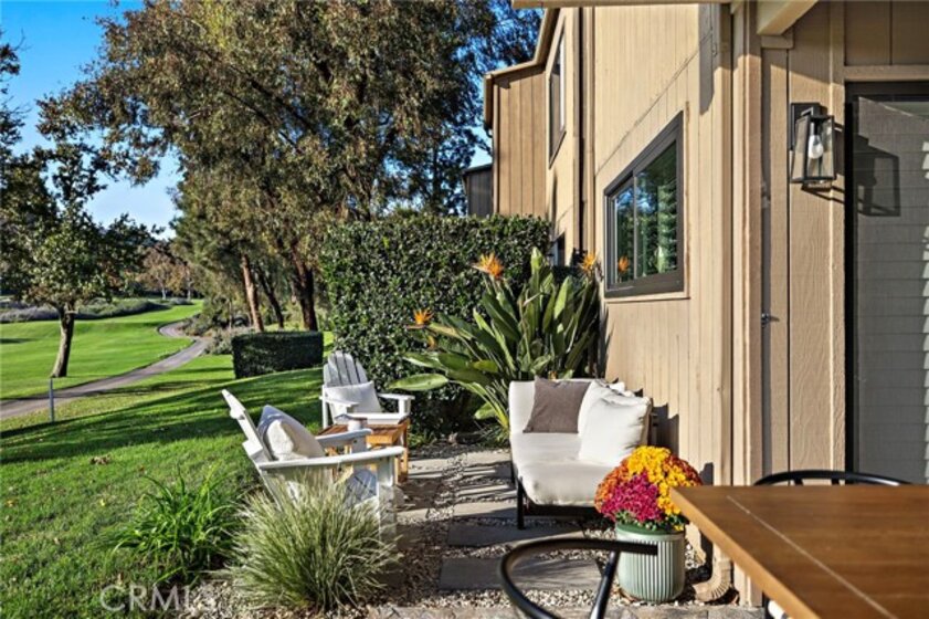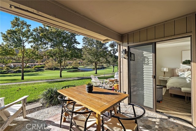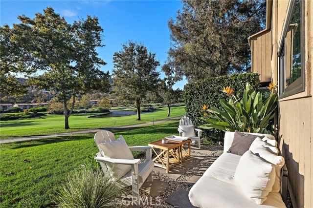 Featuring panoramic greenery views on the El Niguel Country Club golf course, a fully updated, meticulously cared-for interior and inviting backyard patio space that serves as a second living area, this 2 bed, 2 bath is special. It includes newer luxury vinyl plank flooring throughout, a remodeled kitchen with built-in refrigerator, quality cabinets including pull-out shelves and a full-size pantry. The spacious dining and living area leads directly to the covered patio with an adjacent open-air patio, providing ideal indoor/outdoor living for sipping your favorite beverage, enjoying beautiful scenery, and viewing the various species of birds that visit the pond. Spacious primary bedroom suite includes slider to the outside patio living area and an impressive remodeled bath with marble counters and walk-in shower. Second bedroom has a convenient Murphy bed for guests and an attached bonus room for home office, work out, hobby, or extra storage. Second bathroom is also updated with modern tile and stone and gorgeous large shower. Newer windows are all equipped with shutters or automatic window coverings. The detached two car garage is located directly across from the front door and provides significant storage in addition to parking two cars. This home is perfectly situated to view the golf course and pond, access the pool/hot tub, and take advantage of the BBQ area with large grassy area for your dog to play. The complex is peaceful and quiet with super friendly, respectful neighbors. The favorite Salt Creek Beach is five minutes away, along with the Ritz Carlton, Waldorf Astoria, Laguna Beach and Dana Point Harbor. You have world class dining, entertainment, and shopping right around the corner. This home offers the best of Southern CA living at an exceptional value!