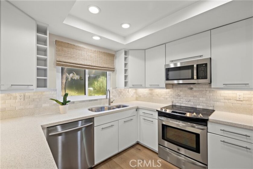 Set along the second fairway of the El Niguel Golf Course, this thoughtfully reimagined single-level residence offers a sense of calm, balance, and understated coastal elegance. Located within the East Nine community, the home opens to a light-filled interior where wide-plank French oak flooring and a soft, neutral palette create a warm and grounded atmosphere. Natural textures and organic finishes have been intentionally selected to bring a sense of ease and cohesion throughout. The kitchen serves as a central gathering space, designed with both beauty and function in mind. A generous island, quartz surfaces, custom cabinetry, and subtle lighting details create an environment that feels open, inviting, and connected. Living spaces flow effortlessly to the outdoors, where expansive views of the fairway, mature trees, and surrounding greenery provide a peaceful and ever-changing backdrop. The connection to nature is present in every room. The primary suite is quietly positioned to take in these views, with direct access to the outdoors. Its design reflects simplicity and comfort, with curated finishes and a calming presence. The secondary bedroom offers flexibility, ideal as a guest retreat or serene personal space. Storage has been thoughtfully considered throughout the home, with abundant and well-designed closet space—an exceptional feature for condo living. The oversized front closet offers a rare sense of scale, nearly functioning as its own room, while additional storage areas provide both convenience and ease in everyday life. Both bathrooms have been remodeled with clean lines and thoughtful materials, emphasizing clarity and function over excess. Additional features include a spacious detached two-car garage and a location that offers close proximity to coastal destinations such as Salt Creek Beach, Dana Point Harbor, and the refined amenities of the Waldorf Astoria Monarch Beach Resort. This is a home that invites a slower pace—where light, space, and natural elements come together to create a sense of everyday ease.