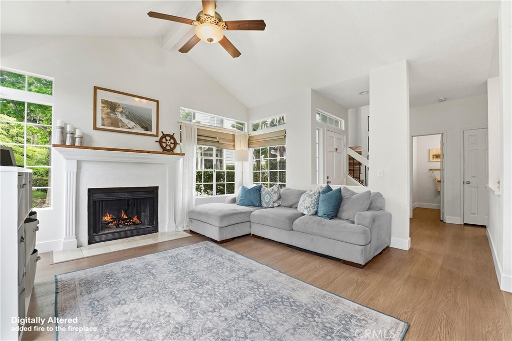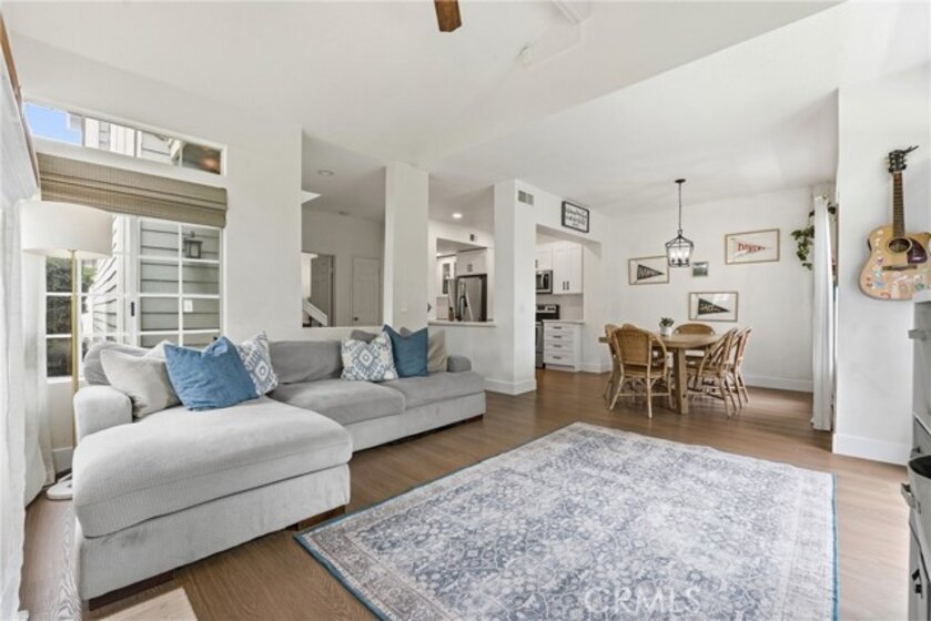 Welcome to 49 Campton, a beautifully upgraded end-unit condo nestled in the highly sought-after Windrift community of Beacon Hill in Laguna Niguel. This charming Cape Cod–style two-story home offers 3 spacious bedrooms, 2.5 bathrooms, and a desirable blend of comfort, style, and functionality. Step inside to find warm wood laminate flooring throughout and an inviting, light-filled layout. The remodeled kitchen is a true centerpiece, featuring quartz countertops, a farmhouse (ranch) sink, and a new range and oven—all opening seamlessly to the living room. Here, you’ll enjoy cozy evenings by the elegant marble-tiled, wood-burning fireplace. Upstairs, the primary suite provides a relaxing retreat with a generous walk-in closet and an updated en-suite bathroom complete with dual sinks and a beautifully tiled walk-in shower. Additional highlights include a two-car attached garage with epoxy flooring and built-in storage, offering both convenience and organization. The HOA dues include water and trash, adding to the ease of ownership. Residents of Beacon Hill enjoy resort-style amenities, including three pools and spas, six tennis courts, and miles of scenic, meticulously maintained walking trails. This is coastal living at its finest—don’t miss the opportunity to call this exceptional home yours.