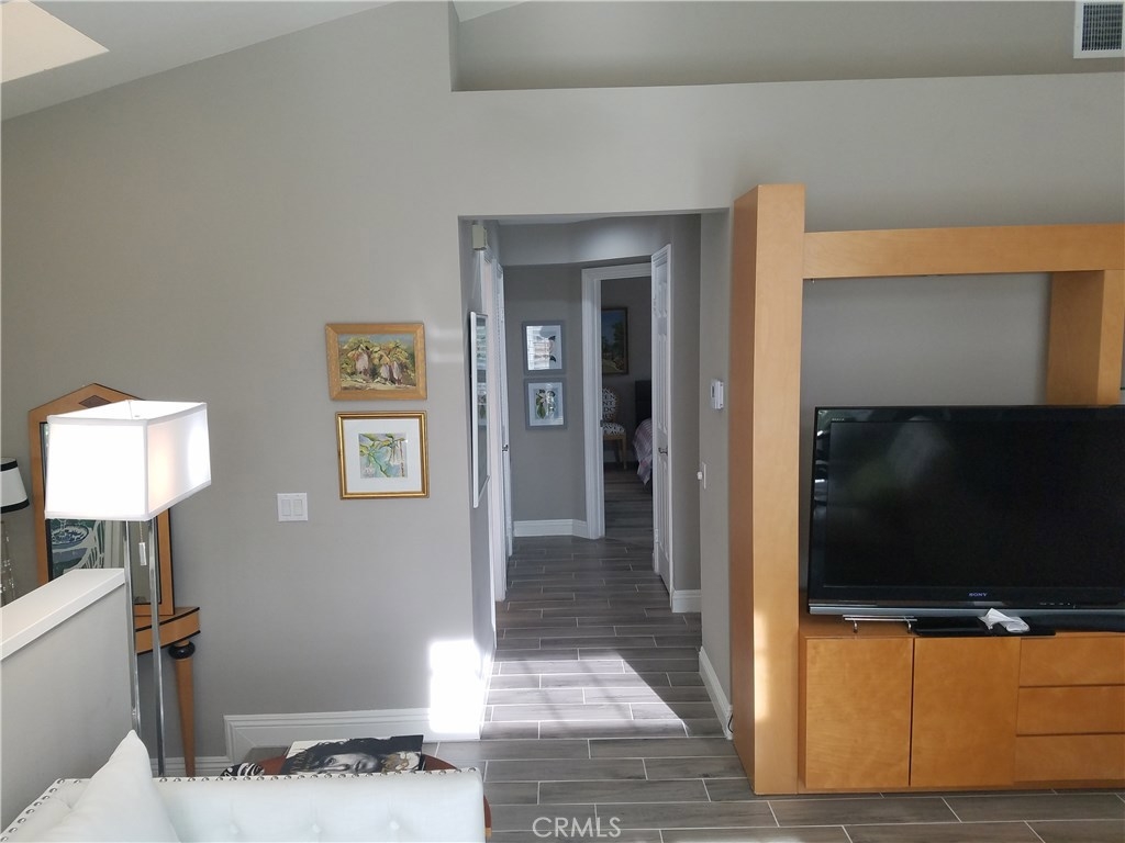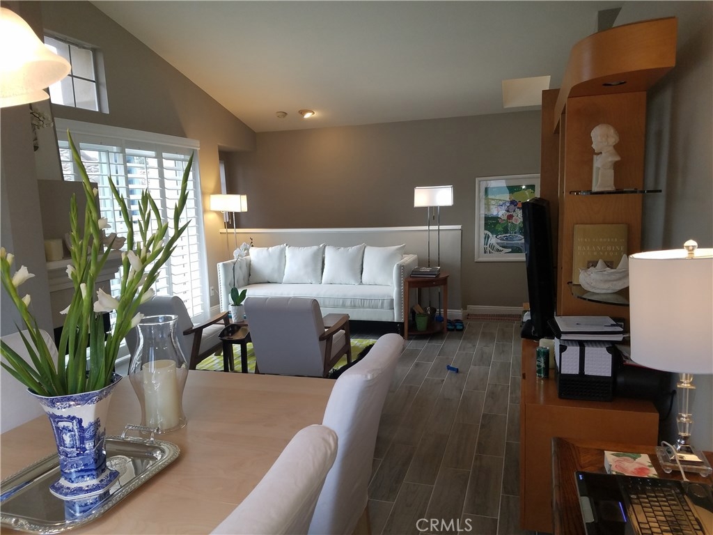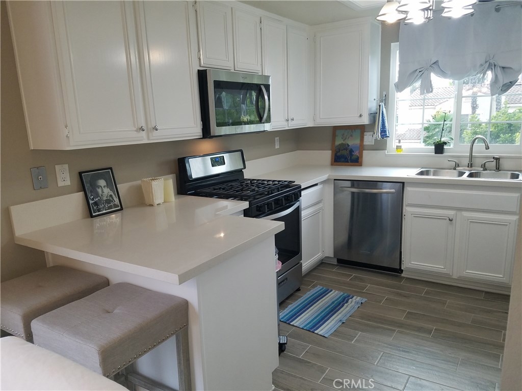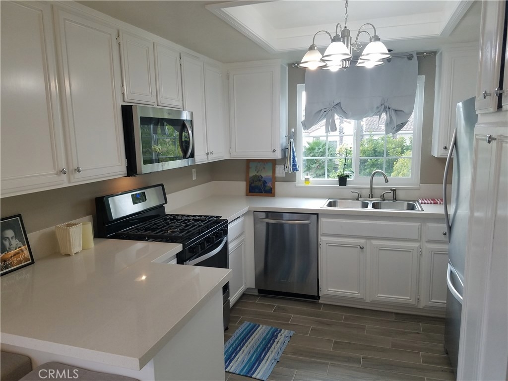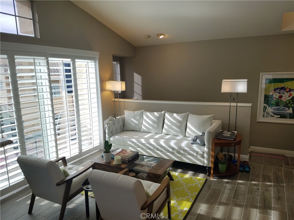 Beautiful, tastefully upgraded end-unit Laguna Hills townhome in the much sought after Marina Hills Chandon Community. This property boasts a perfect mix of light tile and wood grain laminate floors, has new sliding glass doors, new wood shutters, was recently painted, has upgraded kitchen counter tops, stainless steel appliances, the garage on the main floor with the living area upstairs and mirrored closets in the master bedroom. This private end unit is light and bright, has a 2 car direct-access garage, laundry with water proof metal plate linoleum flooring inside the unit, a fireplace in the living room, skylights, higher ceilings and 2 balconies with wonderful open space views to enjoy. This community is exquisitely maintained and has all the right amenities - pools, spas, a clubhouse, playgrounds, tennis courts and lots of trails all around. Come see why this community conveniently located near Dana Point, Laguna Beach, great shops and restaurants, excellent schools and beautiful Orange County beaches makes Marina Hills Chandon the place to be!