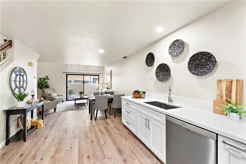Welcome to this exquisite condo nestled in the sought-after Crystal Cay community of Laguna Niguel. Meticulously renovated and upgraded with modern touches, this 1 bedroom and 2 bath unit exudes timeless elegance. Step into the light-filled open concept living room that seamlessly flows into the gourmet kitchen, boasting shaker-style cabinets, recessed lighting, and a charming breakfast nook – all thoughtfully remodeled in 2022. Throughout the home, you'll find luxury vinyl wood-like flooring complemented by vaulted ceilings. Enjoy your morning cup of coffee or evening glass of wine on your private patio accessed through glass sliding doors from the living room. The second floor unveils a tranquil master bedroom loft adorned with plush new carpeting, an updated vanity area, and a completely remodeled bathroom featuring shaker-style cabinets, wood-like flooring, modern hardware and gorgeous shower with honeycomb tile. This exceptional condo comes with a detached carport and ample common area parking. Recently re-piped, painted, and upgraded, this home ensures a serene living experience. The Crystal Cay community offers resort-like amenities, including two pools, two jacuzzis and dog park surrounded by lush landscaping. Experience the convenience of living within walking distance of the Laguna Heights Marketplace shopping center, Salt Creek Trail, and the Bluff hiking trail. Located just moments away from the beach, freeway access, and award-winning schools, this is a prime opportunity to own a breathtaking condo in an enviable location. Don't miss the chance to call this luxurious retreat your own!