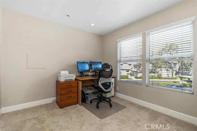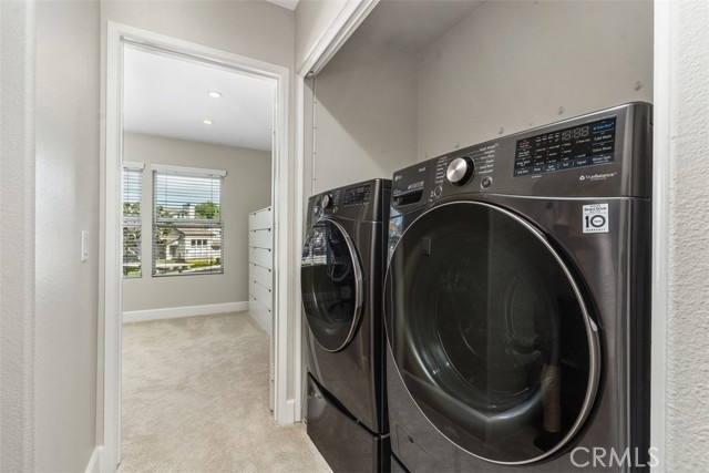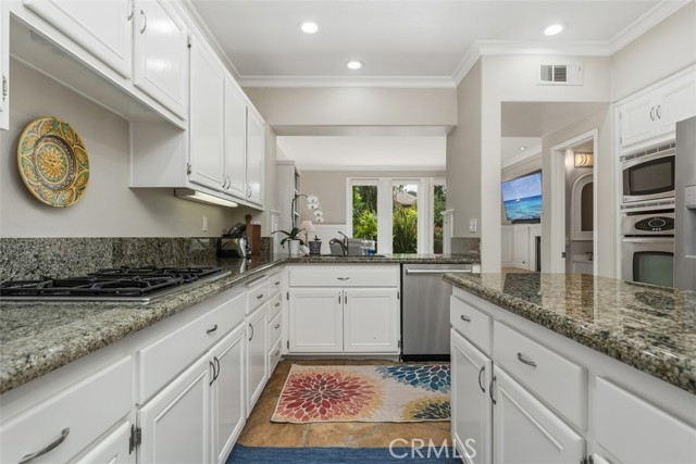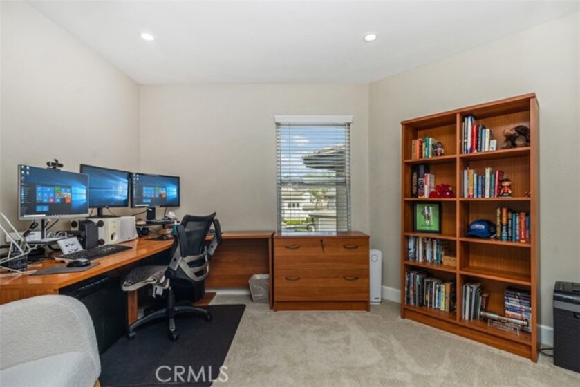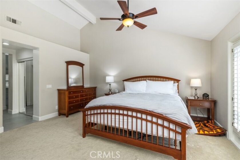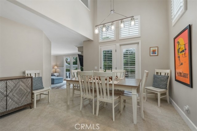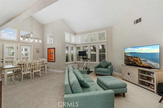 This turnkey two-story townhome offers 3 bedrooms, 2.5 bathrooms, a family room and private rear yard. Soaring cathedral ceilings and expansive windows flood the home with natural light, creating a bright and inviting atmosphere. The spacious great room is perfect for entertaining, while the cozy family room with fireplace invites relaxation. The kitchen boasts white cabinetry, granite countertops, a new stainless-steel refrigerator, and a cheerful breakfast nook. Upstairs, the primary suite offers plenty of light with a view balcony and a newly remodeled bathroom featuring a walk-in shower, spa tub, and white cabinetry. The two additional bedrooms, a full bath and laundry area complete the upper level. Additional upgrades include newly re-piped PEX plumbing, a new water heater, whole house water filtration system, wood shutters, and slate stone flooring downstairs. Step outside to your private entertainer’s patio—an oasis framed by mature palms and greenery. The nearby community pool and spa add to the resort-like experience. Low tax rate and NO MELLO-ROOS! Located just under 3 miles from stunning beaches and close to hiking trails, parks, and everyday amenities—this home truly has it all. Don’t miss your chance to live where luxury meets location!