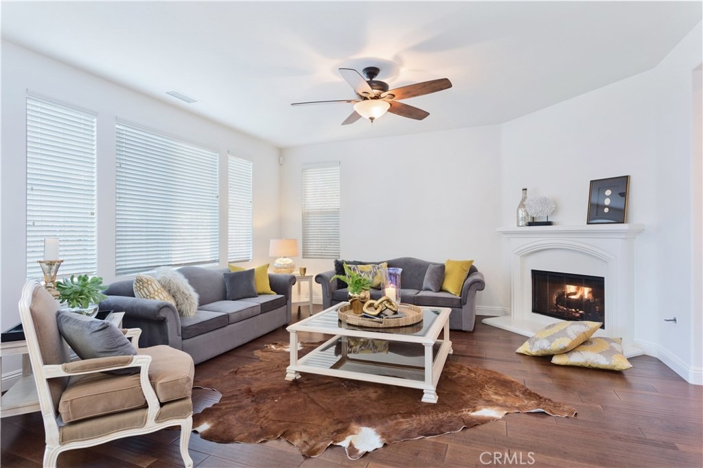 Nestled in the desirable Cornerstone community, this charming Mediterranean-style home offers a blend of comfort and functionality. The kitchen features stainless steel appliances, a center island, ample cabinetry, spacious granite countertops, and recessed lighting, seamlessly flowing into the living room with a cozy gas fireplace. The primary suite boasts a walk-in closet and an en-suite bathroom with dual sinks, a soaking tub, and a separate shower. Two additional bedrooms share a Jack-and-Jill bathroom with dual sinks. Sliding glass doors off the kitchen lead to a paved patio with a built-in barbecue and bar area, ideal for outdoor gatherings. Additional highlights include hardwood flooring, central air conditioning, ceiling fans, and an upstairs laundry room. Residents also enjoy access to a community pool and spa for relaxation.