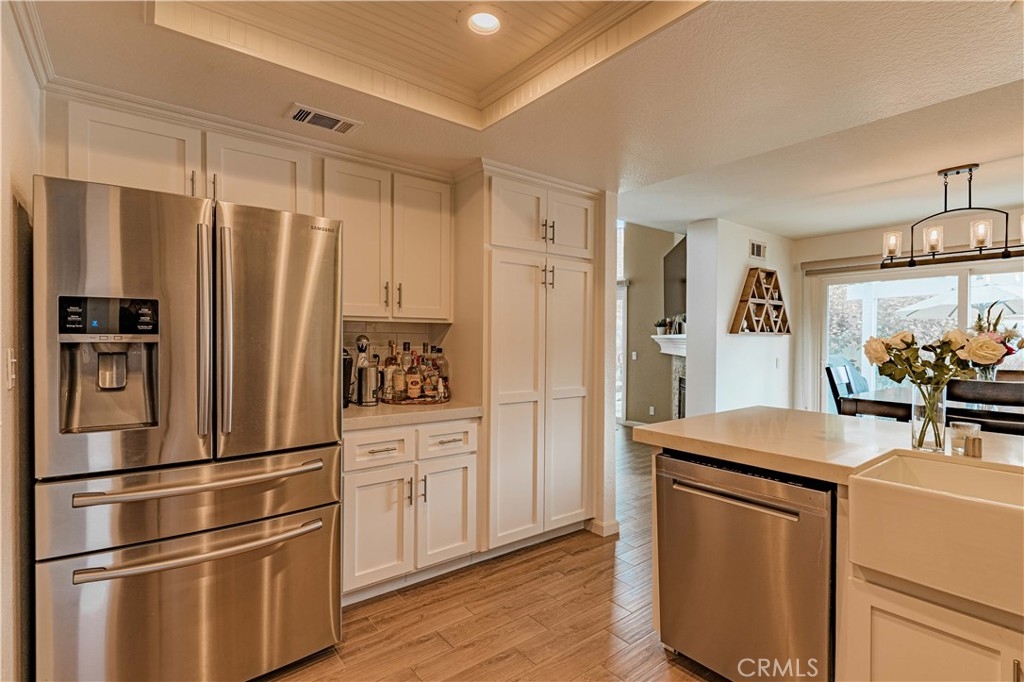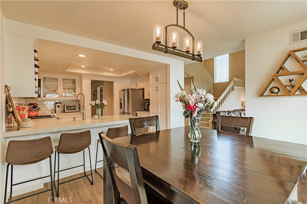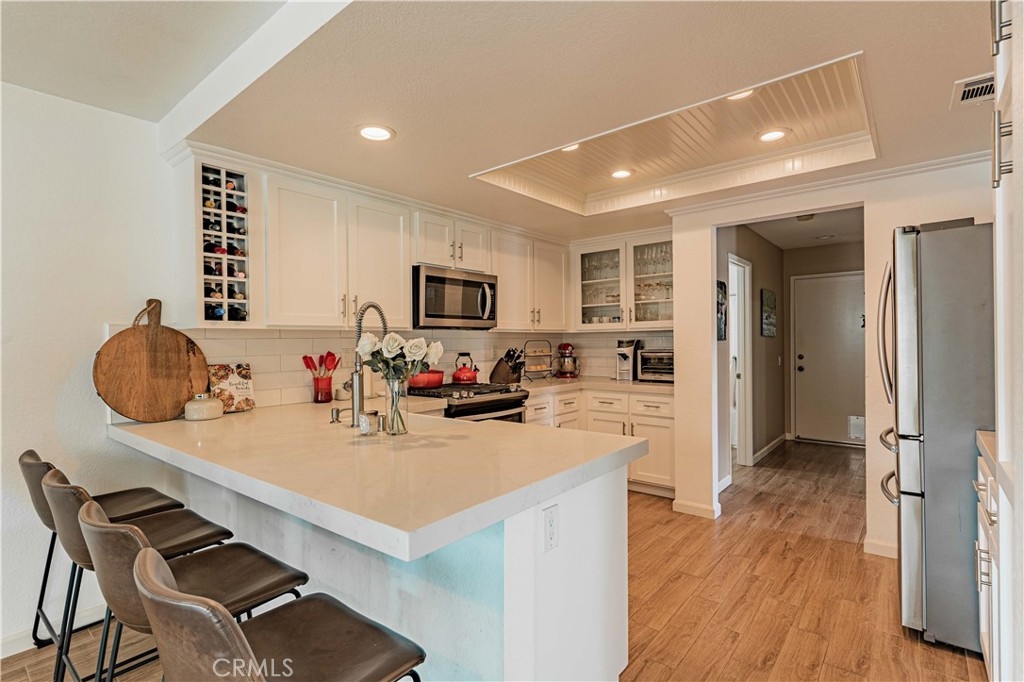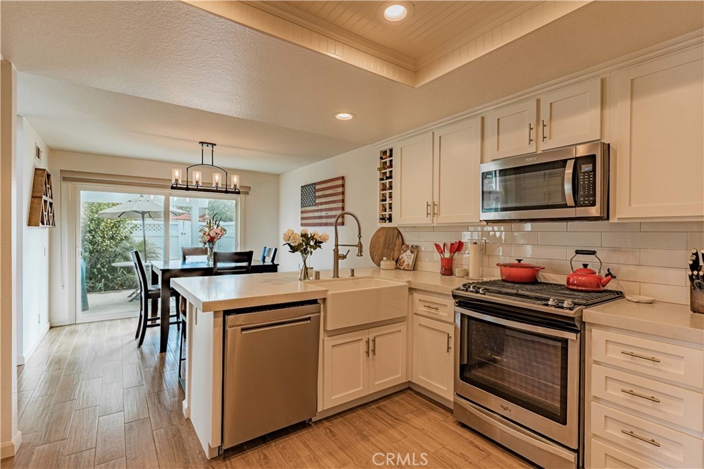 Highly upgraded two level end unit townhome style condo with rare driveway, upgrades include newer vinyl windows, remodeled kitchen with shaker style kitchen cabinets, Quartz counter tops, pull out cabinet drawers, remodeled bathroom vanities, remodeled shower, upgraded fixtures, upgraded lighting fixtures, canned lighting, recent upstairs carpeting, epoxied garage floor, recently replaced water heater, close proximity to Colinas Trail, close to restaurants, shopping, and just a few miles to Dana Point Harbor, Salt Creek Beach & Doheny State Beach.