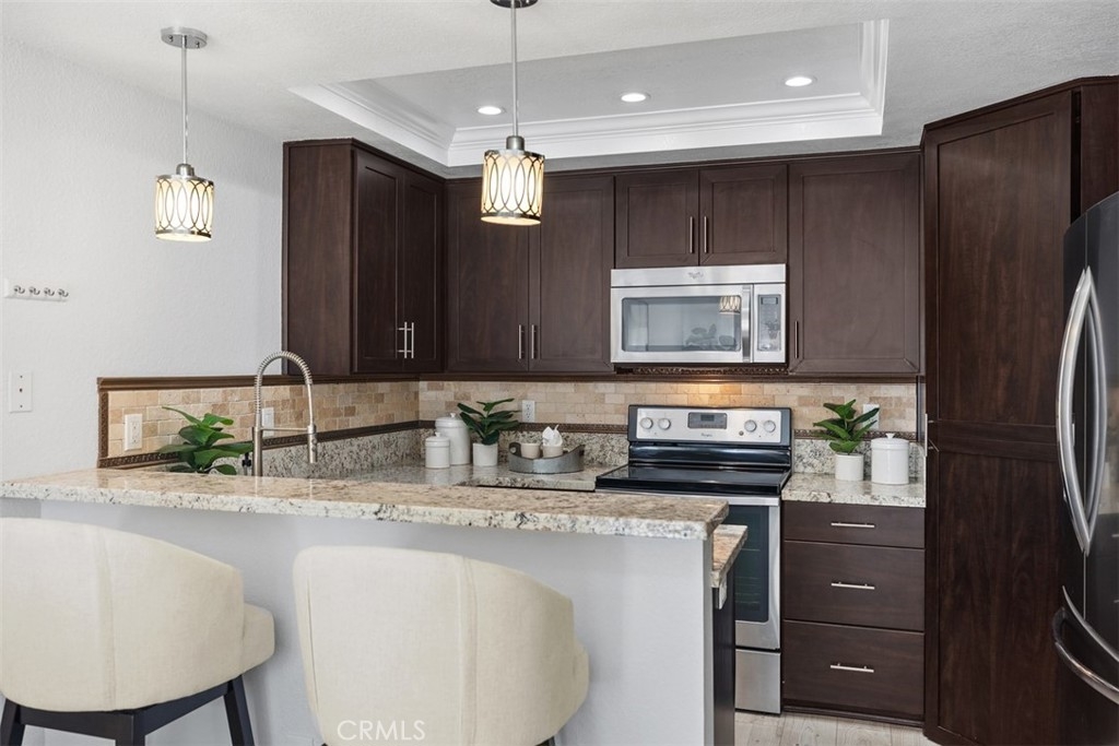 *** WOW *** FRESHLY REMODELED with NEW wood flooring and updated kitchen and bathrooms. This charming 2-bedroom townhome, complete with a large loft, is ready to move-in ready and and enjoy. The open floor plan and soaring vaulted ceilings create an inviting and cozy atmosphere. The spacious, upgraded kitchen shines with shaker-style cabinets, granite countertops, and stainless steel appliances. Upstairs, the versatile loft makes a perfect bonus room or home office, with its own access to the upstairs bathroom. Cozy gas fireplace. The newly installed skylight bathes the space in natural light and can even be opened for fresh air, with an adjustable shade to control brightness. New LED recessed lighting and chandelier was just added. Both bedrooms are generously sized. The downstairs bedroom on the first floor, features custom built-in cabinets and stylish wood shutters, while the second-floor master boasts dual closets and high ceilings. The bathrooms have been beautifully updated with upgraded counters and sleek white cabinetry. Tubs ad showers have been reglazed. Outside, unwind on the patio, your personal oasis at the end of the day. Inside, enjoy the convenience of your own washer and dryer (all appliances can be included). Home was repiped last year with Pex piping for added reliability. The community offers two pools, a jacuzzi, and a dog play area just steps away, plus it's nestled in a quiet location, just steps from miles of scenic hiking trails. Amazing location with a quick 10-minute drive, you can be soaking up the sun at Dana Point Harbor or relaxing on beautiful beaches. Close to restaurants, shopping, and more, this home also features a covered carport with additional storage and plenty of extra parking close by. Don't miss out—schedule a tour today!
