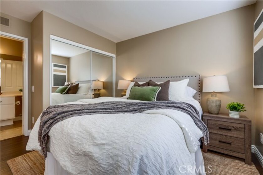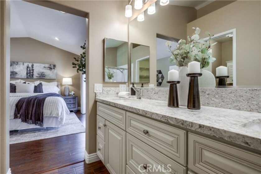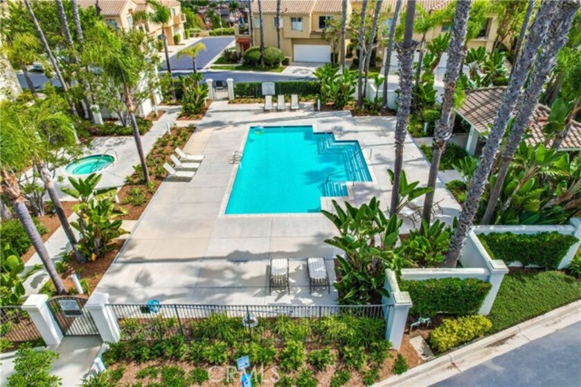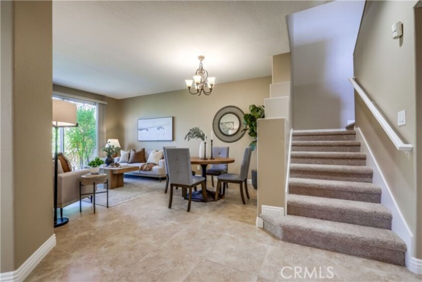 Prepare to fall in love with this beautifully updated and well-maintained home superbly located in the highly desirable Encore at Marina Hills community, the perfect example of pride in ownership. You will adore the private location, a superb setting for peaceful living in this friendly Marina Hills community ideally located a short walk from Parc Vista Park and Marina Hills Park. As you enter, the flush mount Crystal chandelier in the entry way sets the tone in this graceful home with Ceramic tile floors throughout the main level, custom lighting, a neutral palette, and a well-designed floorplan. The living room is open to the dining area and has direct access to the backyard patio, creating an ideal indoor-outdoor living space for gatherings with friends and family around the cozy stacked stone living room fireplace. The elegant Kitchen was beautifully remodeled with exquisite cabinetry, soft close doors and drawers, gorgeous Quartz countertops, marble backsplash, built-in wine fridge, recessed lighting, stainless steel appliances including a 2024 KitchenAid dishwasher, undercabinet accent lighting, and direct access to the backyard patio, perfect for entertaining. The main level includes a highly sought-after full bathroom with walk-in shower, and a bedroom with built-in cabinetry and workspace, window seat, and mirrored closet doors, perfect for an executive home office or 3rd bedroom. The newly carpeted stairs lead you up to the dual bedroom suites, each with an ensuite bathroom and laminate floors, including a primary suite with an updated bath with dual Quartz topped vanity, gorgeous cabinetry, upgraded lighting, a large walk-in closet, and a private balcony taking advantage of the cool ocean breezes, and peek-a-boo views towards the coast, an ideal setting for an evening glass of wine with a loved one. The convenient main level laundry room has full size washer and dryer hookups, linen cabinets, and dual light switches. The enclosed backyard is a private oasis perfect for relaxing and BBQing, with sealed flagstone patio, sprinkler and drip system, and gated exterior access. The attached 2 car garage has motion sensor lighting, built-in cabinetry & overhead storage racks. Encore amenities include a sparkling pool & spa, lounging & picnic areas. Community re-piped in 2018. Close to Marina Hills Park pool, clubhouse, tennis courts, playgrounds, sports fields, & sport courts, shopping, dining, hiking & biking trails, and minutes from local beaches.