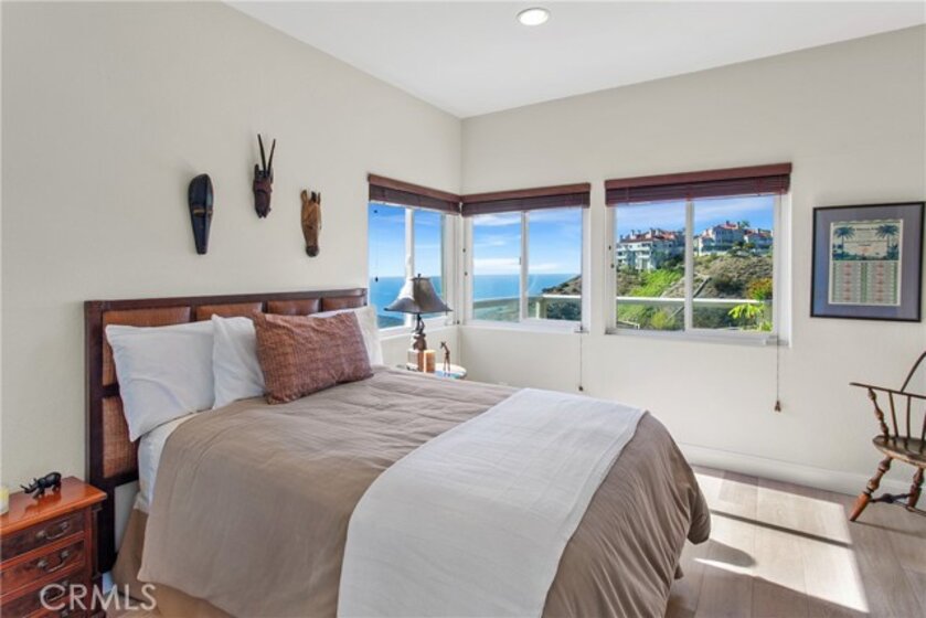 Nestled in the prestigious guard-gated enclave of Laguna Sur, this remarkable home showcases the community’s largest floorplan and boasts breathtaking views of the ocean, Catalina Island, coastline, and surrounding canyons. Thoughtfully designed for both refined entertaining and everyday comfort, the home has been beautifully updated with fresh paint, wide-plank engineered hardwood floors, and a remodeled kitchen with granite countertops, custom cabinetry and modern appliances. The main level welcomes you with an expansive living area and an oversized balcony that seamlessly blends indoor and outdoor living. Downstairs, a large bonus room with its own balcony separates two generous ensuite bedrooms; the perfect retreat for family, guests, or multi-generational living. All bathrooms have been completely remodeled with elegant finishes, including a new bidet and toilet. Additional enhancements include marble-accented fireplaces, one with an electric insert, new interior doors, upscale carpeting in the primary suite and new sliding glass doors to the balcony. The home also features a built-in desk and storage, an enclosed bookcase, a newly designed walk-in closet, and a finished attic. Residents of Laguna Sur enjoy exclusive resort-style amenities including two pools, a spa, and two tennis/pickleball courts. This prime coastal location is just minutes from the Waldorf Astoria and Ritz-Carlton resorts, the El Niguel Country Club, the charm of Laguna Beach Village, the Dana Point Harbor, and a myriad of dining and shopping options in the newly renovated “Lantern District” in Dana Point. Badlands and Sea View parks are just outside the gates and offer an abundance of trails and recreational opportunities for the outdoor enthusiast.