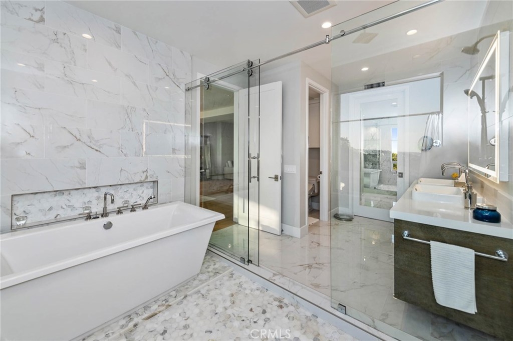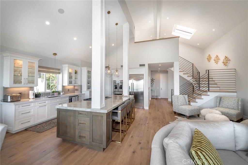 Stunning, unobstructed front-row coastline views of Catalina Island, Laguna Beach, Palos Verdes, crashing waves, city lights and golden sunsets over the Pacific. These spectacular, "jaw-dropping" panoramic views are some of the best anywhere in Orange County. Located on a prime corner lot, every inch of this amazing home has been recently and painstakingly remodeled, expanded and renovated to perfection. Highest quality design, materials and workmanship has created an architectural masterpiece right out of a magazine. The main level Great Room offers soaring ceilings, wide-plank hardwood floors, open gourmet kitchen with contrasting center island, pendant lighting, stone countertops, Sub Zero refrigerator, high end appliances and custom cabinets. This level includes formal dining and living areas with fireplace and terrace to entertain while overlooking the awe-inspiring views. The lower level master suite offers the same mesmerizing views and includes a sitting area, fireplace, covered loggia and opulent master bathroom of porcelain tile featuring seamless glass enclosed shower and free-standing tub plus walk-in closet with custom organizers. The upper level features 2 bedrooms with Jack and Jill bath plus an open loft with built-in desk,cabinets and skylight. Other features include central A/C, epoxy garage floor, custom window coverings, stone entry and full driveway. Laguna Sur HOA amenities include guard gated entrance, pool/spa and tennis courts. Easy to add an elevator