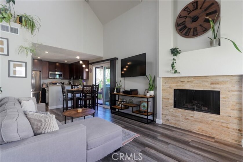Exceptional Value in Crystal Cay – Truly Move-In Ready! Welcome to your light-filled private oasis in the highly sought-after Crystal Cay community of Laguna Niguel. This beautifully designed 2-bedroom, 1¾-bathroom condo offers the perfect combination of comfort, style, and location — just minutes from world-class beaches, shopping, dining, and scenic walking trails. This popular dual-primary layout is ideal for privacy, guests, or flexible living. Step inside to soaring vaulted ceilings, recessed lighting, and an airy open-concept living space enhanced by luxury vinyl flooring throughout. The upgraded kitchen features granite countertops, enhanced cabinetry, and flows seamlessly into the spacious living room highlighted by a striking tile-faced gas fireplace. Additional upgrades include retrofitted windows and sliding doors, improving both energy efficiency and comfort. The versatile floor plan offers a generously sized main-level bedroom with a huge walk-in closet, upgraded ensuite bath, and convenient access to the in-unit washer and dryer. Upstairs, the second primary suite includes a large mirrored closet, dedicated study nook, private bathroom, and direct access to an expansive rooftop patio. Designed for both entertaining and relaxation, the rooftop deck offers peaceful tree-top views and glimpses of the surrounding hills. Additional storage closets on both patios add to this model’s reputation for exceptional storage space. This super-private upper-level unit is tucked into a desirable back-corner location with abundant guest parking. The home includes a covered carport with large overhead storage plus a parking pass. Crystal Cay residents enjoy resort-style amenities including pools, spa, dog park, and beautifully maintained grounds, with trash service included in the association dues. Whether you're a first-time buyer, investor, or downsizer, this move-in-ready home presents an outstanding opportunity to own in one of Laguna Niguel’s most desirable communities.