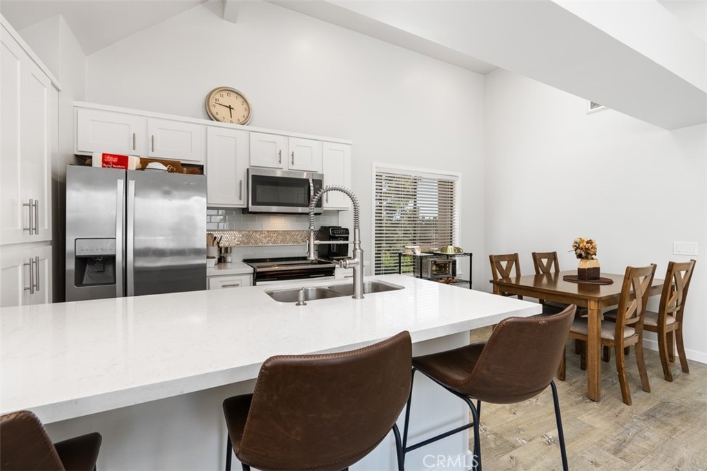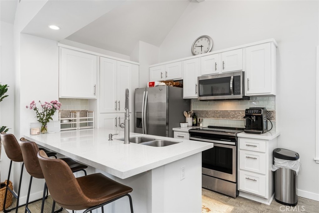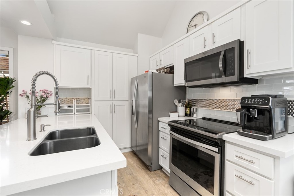 89 Grenada is a highly upgraded home located towards the back of the complex with fantastic views. This upper level, end unit condo, has dramatic high ceilings that let in an exceptional amount of natural light. You'll love the open concept floor plan with a beautiful kitchen with quartz counter tops. The primary bedroom suite also has high ceilings and an oversized walk in closet. The Crystal Cay community is ideally close to the beach, as well as being convenient to the 5 freeway for commuting. You'll also enjoy nearby shopping and award winning schools. The community provides residents with 2 pools, a dog park, and also a hiking trail that has awesome views towards Saddleback Mountain. Come see for yourself why this is the best of Crystal Cay.